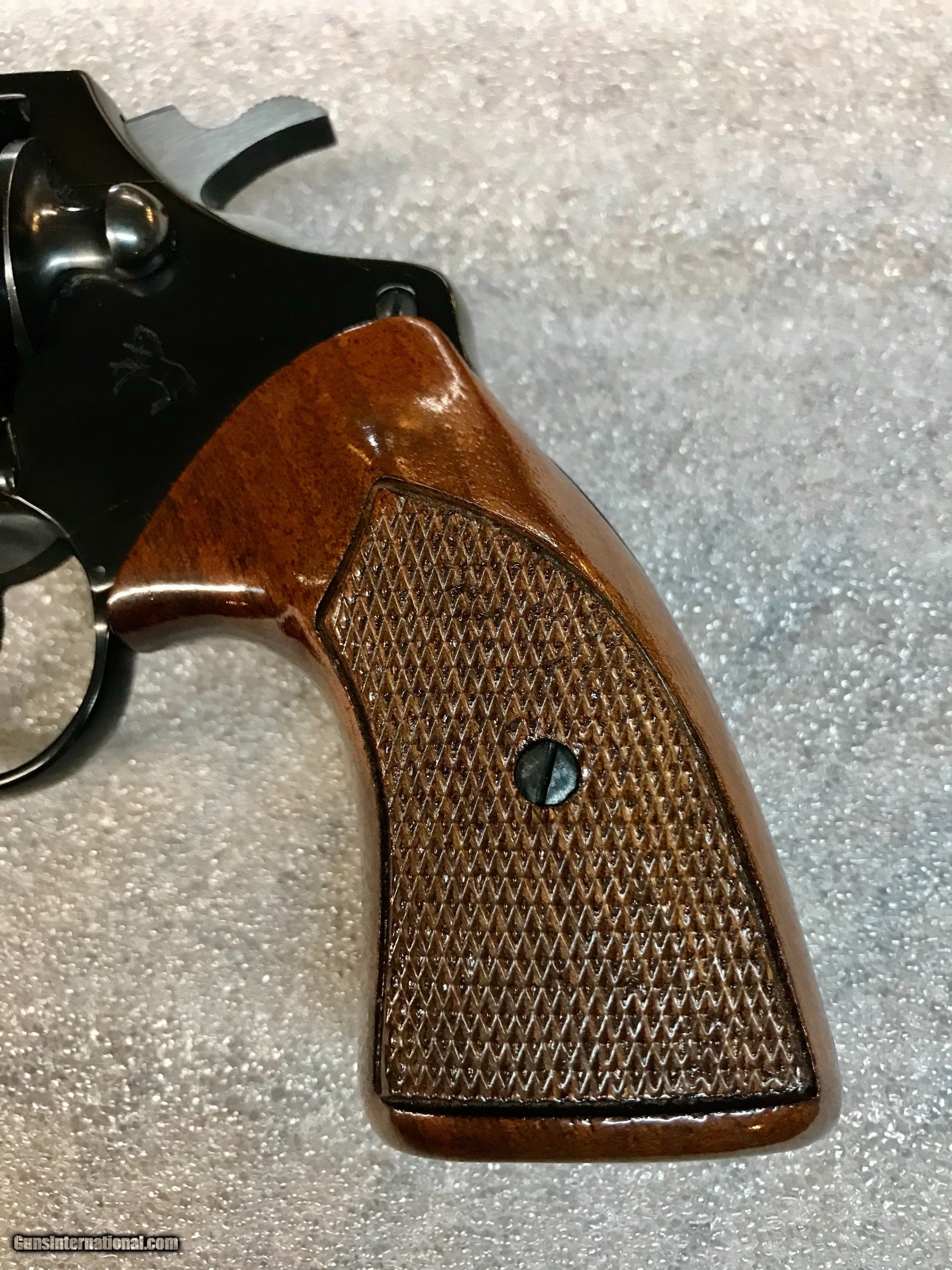 Description: 1974. Serial #. F60xxx 2 " barrel Like new condition throughout No edgewear , nicks or scratches 99 % + factory bluing 2nd issue featuring , featuring heavy barrel , andshrouded extrector rod Does not appear to have ever been fired Collector condition and quality $ 1595 SOLD |