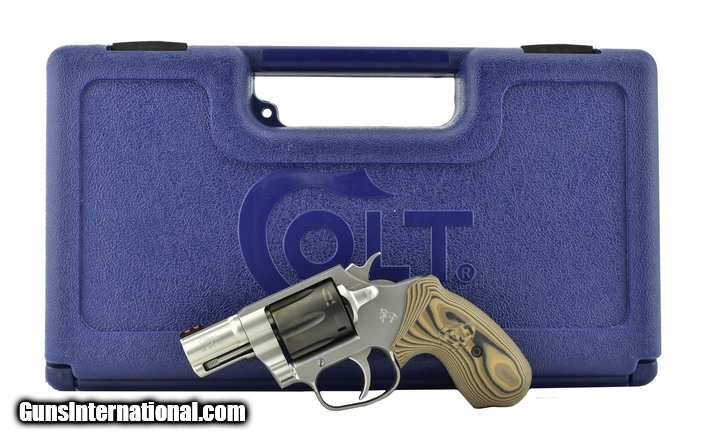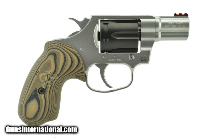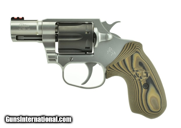 Colt Cobra .38 Special Caliber Revolver. 2” Snub model with red fiber optic front sight and black cylinder.