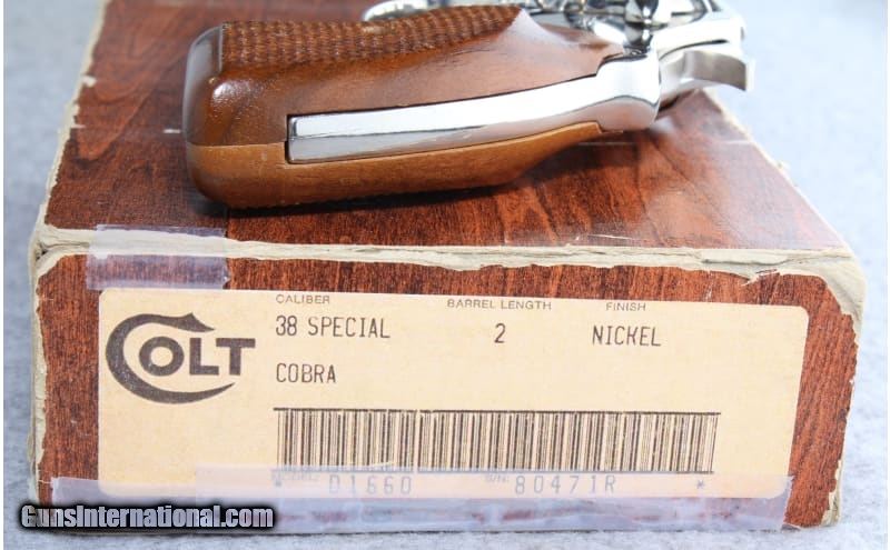 Description: A very nice Colt Cobra nickel .38 special with a 2 inch barrel. Excellent overall condition with the factory box and paperwork. Will make a nice addition to your collection. .38 Special SOLD Metal Condition: "Excellent with light wear, slight turn mark on cylinder Wood Condition: Excellent with light handling marks Bore Condition: Bright and Shiny Triggers: Single/Double action Weight: 1 lbs Sights: "iron sights, fixed Item Location: Gonzales, LA |