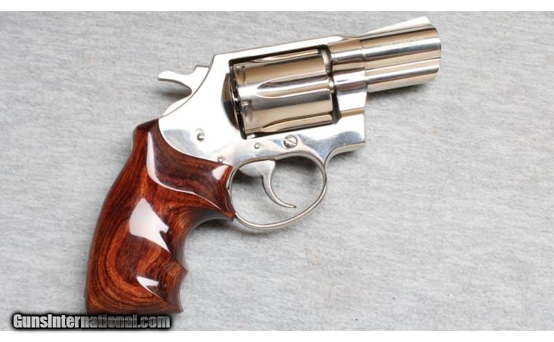 Description: Appears as new - with factory box, papers, custom laminated wood grips and factory checkered wood grips. Classic Colt "snub nose" .38 caliber revolver, 2" barrel with shrouded ejector, 6 shot fluted cylinder, polished nickel finish, double and single action trigger, and 2 sets of wood grips. An excellent choice for collectors. .38 Special SOLD Chambers: Revolver Metal Condition: As new Bore Condition: Bright Barrels: 2 Triggers: Double and single action Butt Pad: Wood grips Sights: "Fixed rear channel, ramp front sights Item Location: La Vista, NE |