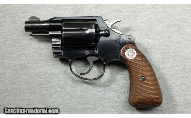 Description: Very good condition, light holster wear, small nicks & scratches. Classic Colt .38 caliber "snub nose" revolver, 2" barrel, 6 shot fluted cylinder, polished blue finish, fixed sights, double and single action trigger, and Colt checkered wood grips. Manufactured in 1962. .38 Special SOLD Chambers: Revolver Metal Condition: Very good Bore Condition: Bright Barrels: 2 Triggers: Double and single action Butt Pad: Wood grips Sights: "Fixed rear, blade front sights Item Location: La Vista, NE |