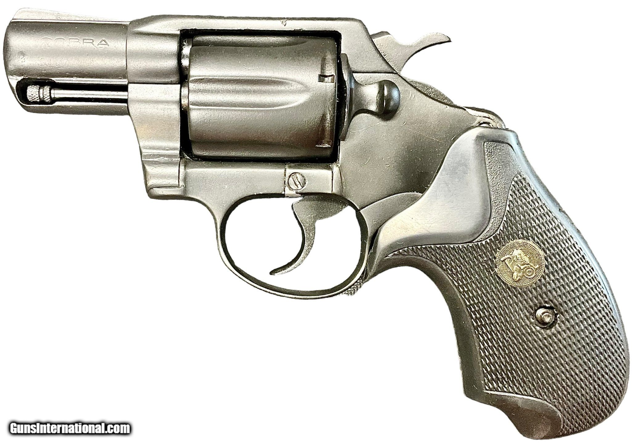 Description: Guns Listing ID: 1334805 Colt Cobra Agent Revolver, 2nd Model, 38 Special, 2 inch barrel, Serial Number 76318R. Manufactured 1978, Former Police Firearm. Recent refinish with Gun Kote. Pachmyr Presentation Grips. Bore shows some pitting, action is smooth, trigger crisp. SOLD Manufacturer: COLT Model: cobra agent Caliber Info: .38 SPL Condition: Used - Non-Certified Barrels: 2 BARREL Finish: BLACK |