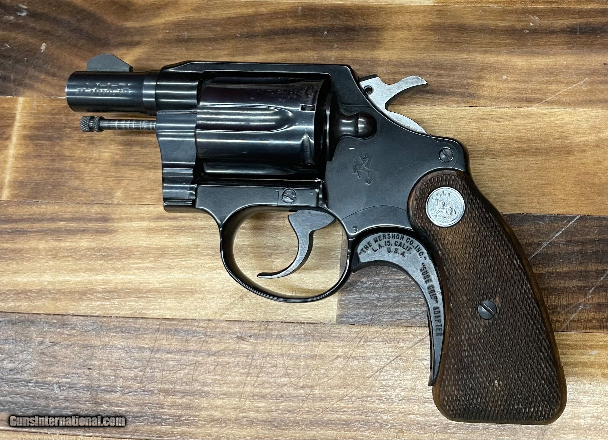 Description: Guns Listing ID: 473098 Used Colt Cobra with original box and manuals chambered in 38SPL in Good condition. Includes a \"Sure Grip\" Adapter. Has some wear and tear (see pictures for reference.) SOLD Manufacturer: COLT Model: Cobra with Original Box and Manuals Caliber Info: 38SPL Condition: Used - Non-Certified Barrels: 2 BARREL Finish: BLUED |