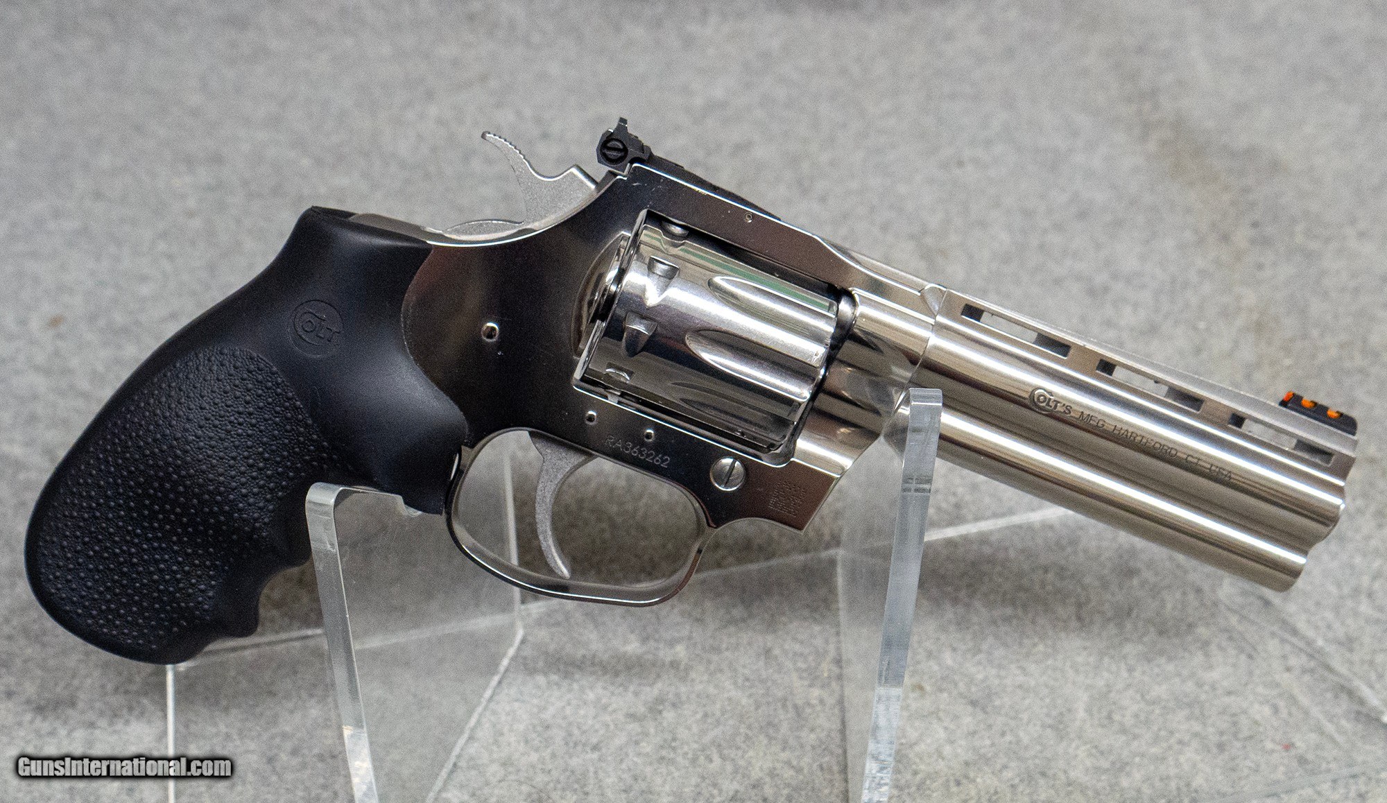 Description: This Colt King Cobra is in overall excellent condition. Minor scratch near muzzle on left side. Original factory case included. .22 Long Rifle Chambers: ".22 Long Rifle, 10-Shot Metal Condition: Excellent Bore Condition: Excellent Barrels: 4.5" Barrel Triggers: DA/SA Butt Pad: Rubber Grips Sights: Adjustable Rear/Fiber Optic Front Item Location: Greenville, SC Price: $849.99 Contact Seller |