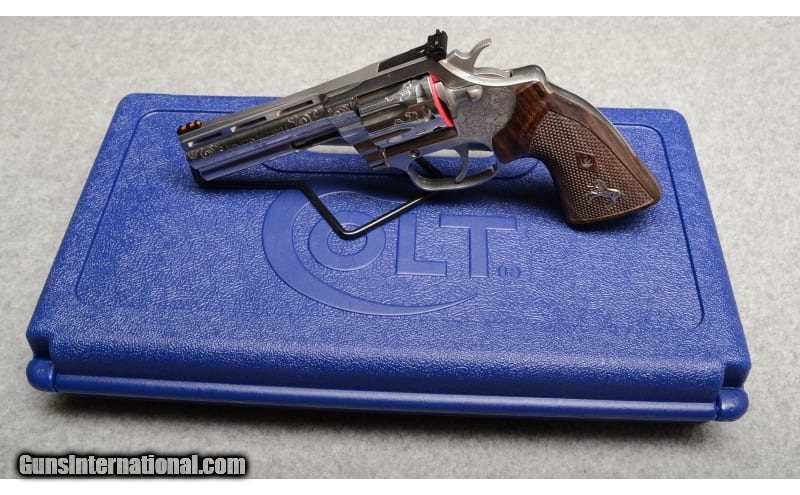 Description: New condition, comes with original box. Colt 10 shot rimfire revolver, 4" ribbed barrel with full underlug & shrouded ejector, engraved stainless finish, fluted cylinder, adjustable sights, serrated double & single action trigger & hammer and Colt checkered rosewood grips with rampant horse inlay. .22 Long Rifle SOLD Metal Condition: ANIB Wood Condition: ANIB Bore Condition: ANIB Barrels: Factory 4 Triggers: Factory Weight: 2 lbs Sights: Factory Item Location: Columbus, OH |