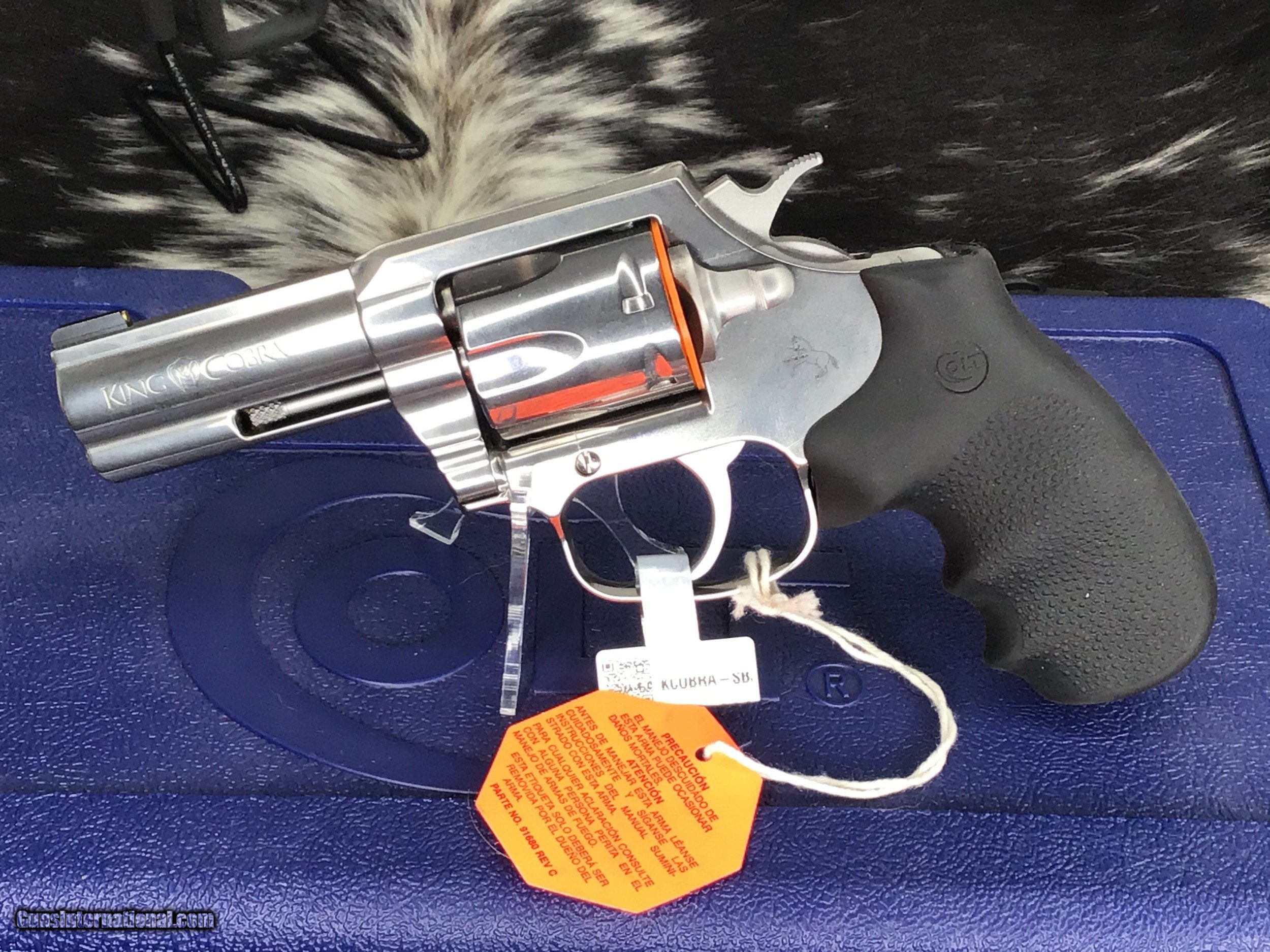 Description: NIB Colt King Cobra wearing a 3 inch barrel and made of high quality stainless steel.Chambered in powerful .357 mannum. Designed as a conceal carry magnum or doubles as a home defender. Shock absorbing Colt rubber grips for comfort and a no slip grip. Six rounds of 357 mag or .38 special capacity. Easy to carry and 100% dependable when you need it. Made in the USA In Hartford CN. Mn buyer needs Mn state ID and permit. Buyer residing outside of Mn pays $30 shipping to local FFL for transfer. SOLD Handgun Caliber: .357 Magnum Manufacturer: Colt Model: King Cobra Barrel Length: 3 inch Condition: New Metal Condition: New Bore Condition: New Action: Da/SA Finish: Stainless Steel |