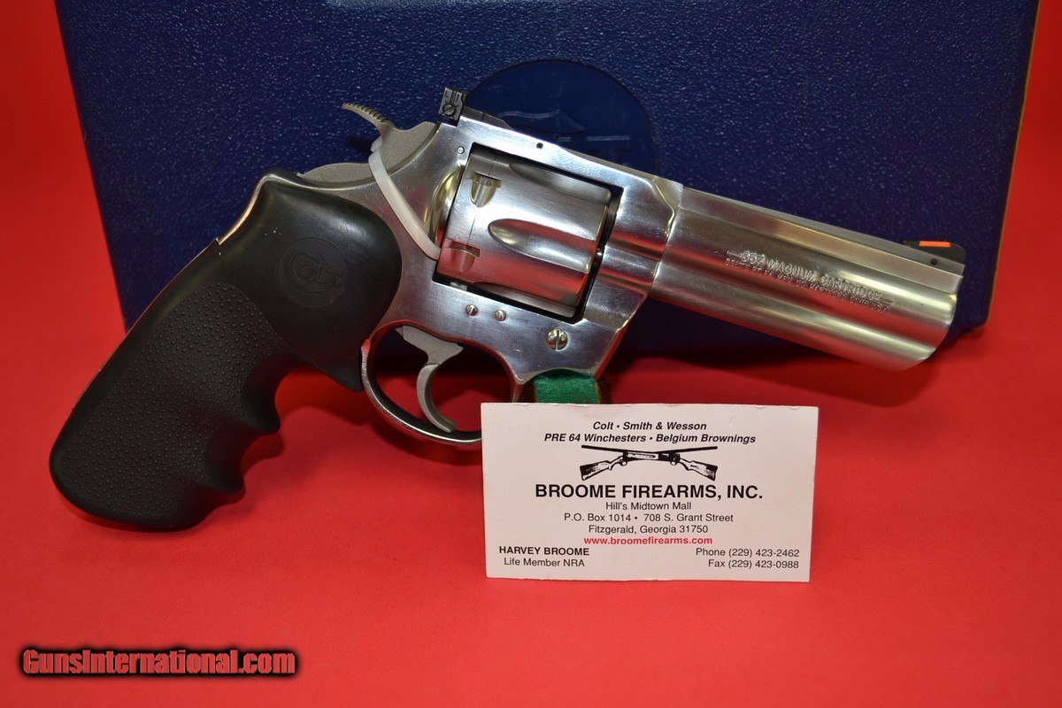 Description: King Cobra, 357 mag., 4 inch barrel, stainless steel, in box, made in 1993, has been fired. Serial Number:EK7xxx SOLD |