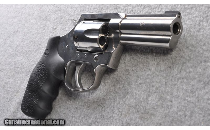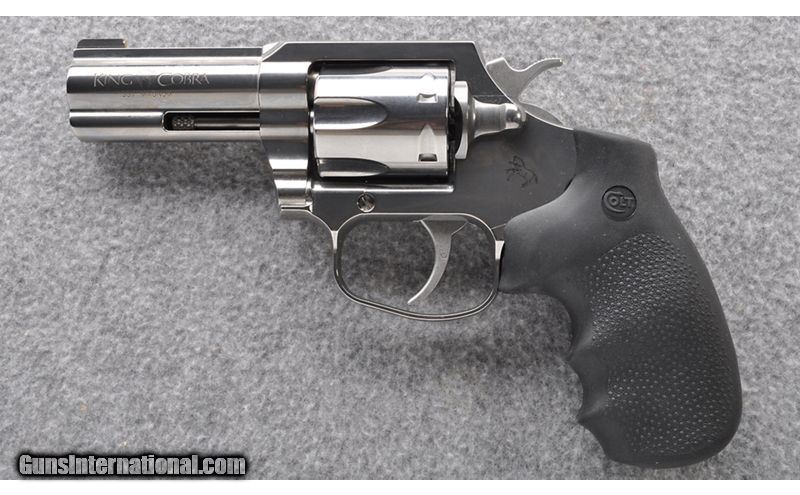Description: Colt's King Cobra is back, reintroduced in 2019. Sporting a heavy-duty frame, 6 shot cylinder and 3" barrel. .357 Mag/.38 spl SOLD Chambers: .357 Smith & Wesson Magnum or .38 S&W Special in a six round revolving cylinder Metal Condition: "Very good in near new condition, some flame staining on front of the cylinder Bore Condition: Bright & sharp Barrels: 3" Stainless full underlug Triggers: Single/Double Action Butt Pad: Rubber grips with Colt logo Weight: 28 oz. Sights: Fixed brass bead front blade and notch rear Item Location: Grand Junction, CO |