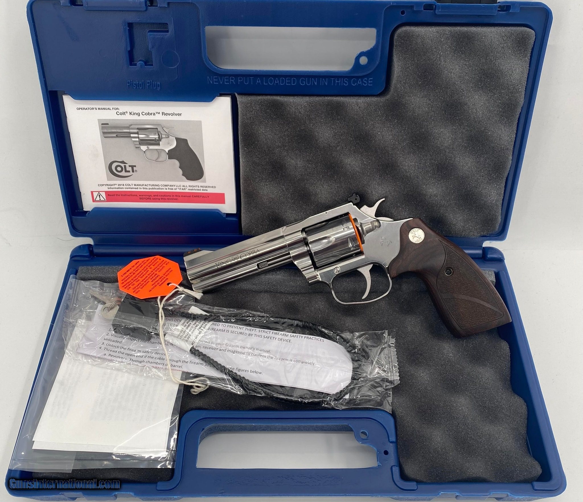 Description: Guns Listing ID: 1092191 Colt King Cobra Target .357Mag 4\"bbl LNIB with box and papers In excellent condition and perfect working order. SOLD Manufacturer: COLT Model: KING COBRA Caliber Info: .357 MAG Condition: Used - Non-Certified Barrels: 4 BARREL |