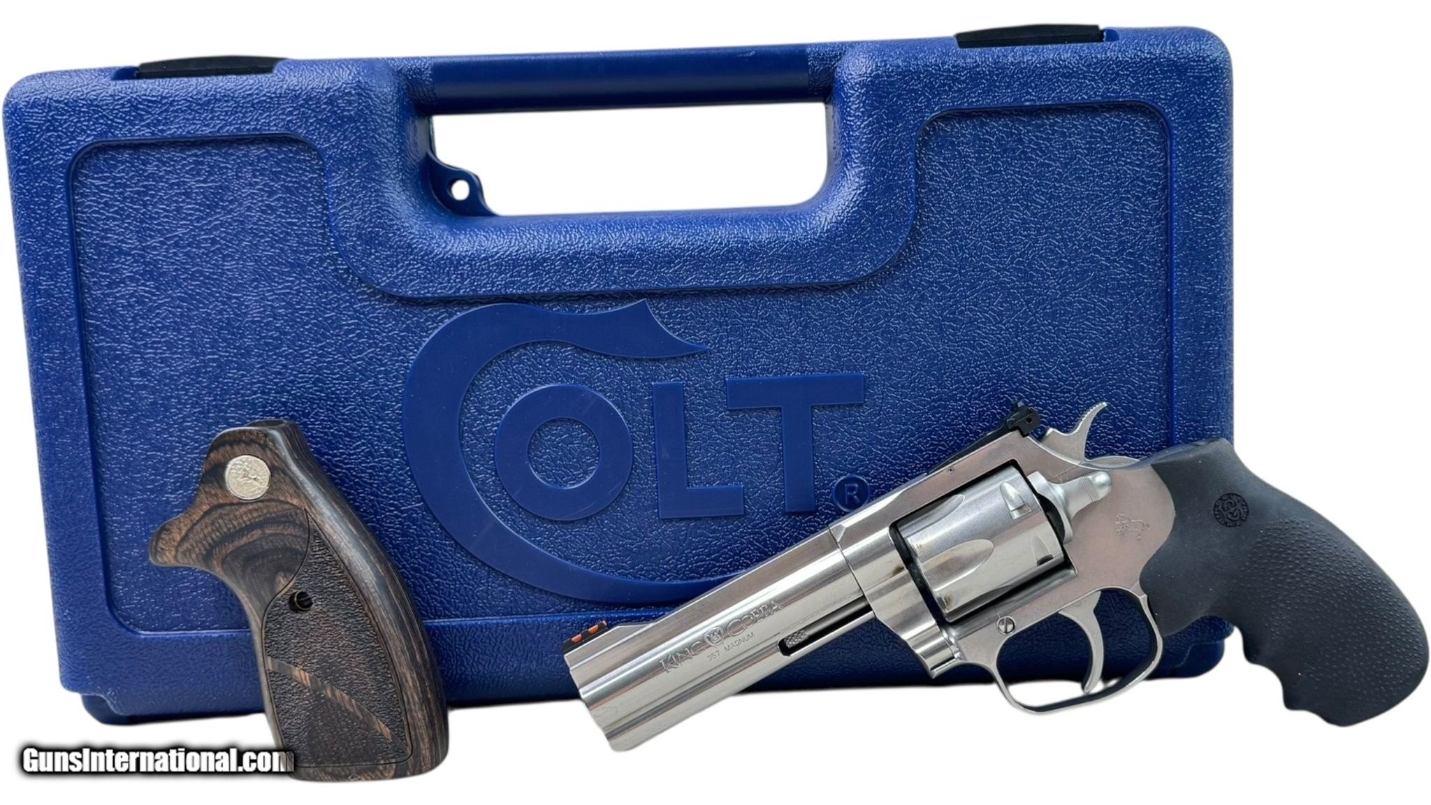 Description: Guns Listing ID: 564590 Type: Used Make: Colt Model: King Cobra MPN: Not specified Serial Number: RA223346 Caliber: 357mag Capacity: 6 rounds Action: Revolver Barrel Length: 4\" Sights: Original Front Blade / Rear Adjustable Finish: Stainless Steel Bore Condition: Bright & Sharp Overall Condition: Minimal signs of handling or use. Finish is overall great. Mechanically excellent. Bore is bright and sharp. Includes: Original wood grips, pachmyer grips, Box, paperwork Additional Notes: This Colt King Cobra revolver in 357mag with a 4\" barrel is in great condition, making it a highly desirable choice for collectors or enthusiasts looking for a used firearm. The stainless steel finish, original sights, and included box and paperwork add to the overall appeal of this revolver. SOLD Manufacturer: COLT Model: King Cobra Caliber Info: .357 MAG Condition: Used - Non-Certified Barrels: 4" BARREL Action: REVOLVER |