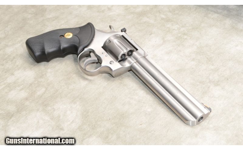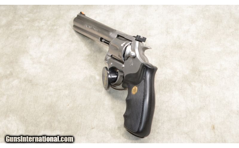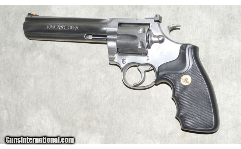 Description: This King Cobra feature rubber combat type finger groove grips with Colt medallions, red insert post and adjustable notch sights, grooved wide trigger and hammer spur, and it is in great condition. SOLD Manufacturer: 1989 based upon the S/N C5xx8K. Caliber Info: .357 Magnum. Chambers: 6 shot single/double action revolver. Metal Condition: Very good to excellent. There is a noticeable turn line but not much else to see. Wood Condition: Excellent. Bore Condition: Shiny and bright. Barrels: 6 inch stainless steel. Triggers: Grooved wide factory single/double action trigger. Stock: Combat style molded rubber with finger grooves. Weight: 47 oz. Sights: Red insert ramp foresight, adjustable notch rear sight. Item Location: Rogers,, MN |