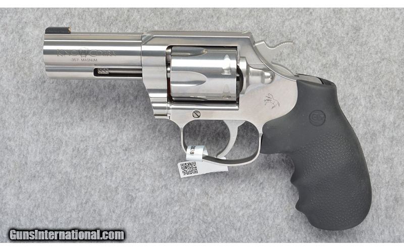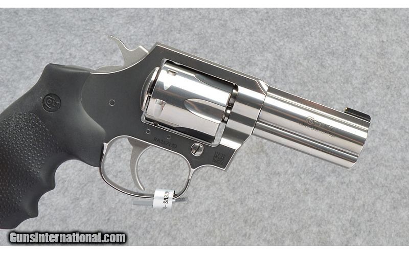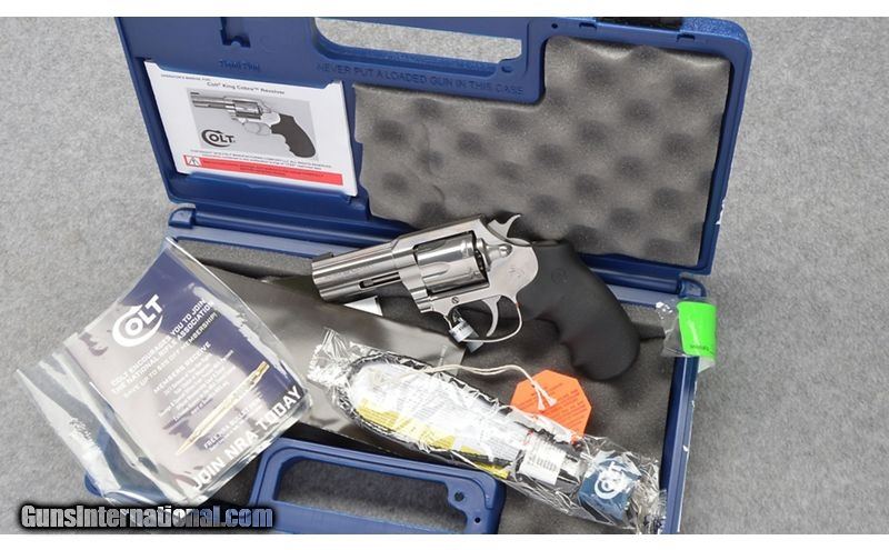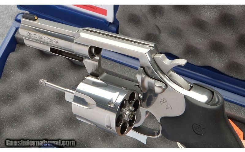 Description: Colt's current production King Cobra 6-shot 357 Magnum. Stainless steel construction with 3 inch (7.62 cm) barrel and Hogue overmolded grips. NEW IN FACTORY BOX. .357 Magnum SOLD Metal Condition: Polished Stainless Barrels: 3 Inch Triggers: DA/SA Weight: 29 oz. Sights: "Notched Frame, Beaded Front Sight Item Location: Buda, TX |