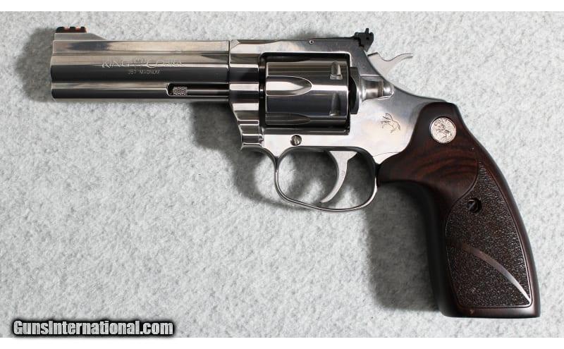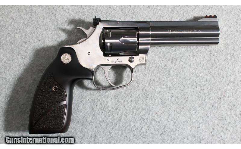 Description: This used Colt Firearm, chambered for .357 Magnum rounds, is in pristine condition. Comes with it's original hard plastic case. Serial Number: RA271048 From Colt's : "The King is back! Following the successful introduction of the Colt Cobra revolver in 2017, and marking Colt's re-entry into the category they once dominated, snake number two has arrived. Colt's King Cobra is reincarnated for 2019 as the 6-Shot .357 Magnum big brother of the Colt Cobra Double Action revolver. Sporting a heavy-duty frame, 3-inch barrel, and brushed stainless steel construction, the King Cobra secures a new place in the legendary heritage that makes Colt double-action revolvers some of the hottest collectible firearms today." .357 Magnum SOLD Metal Condition: Very Good with Minor Handling Marks Wood Condition: Very Good with Minor Wear Bore Condition: Bright and Clear with Good Rifling Barrels: 4 Inches Triggers: Double Action Butt Pad: Rosewood grips Weight: 2 lbs 3 oz Sights: Adjustable rear notched/forward fiber optic Item Location: Fort Worth, TX |