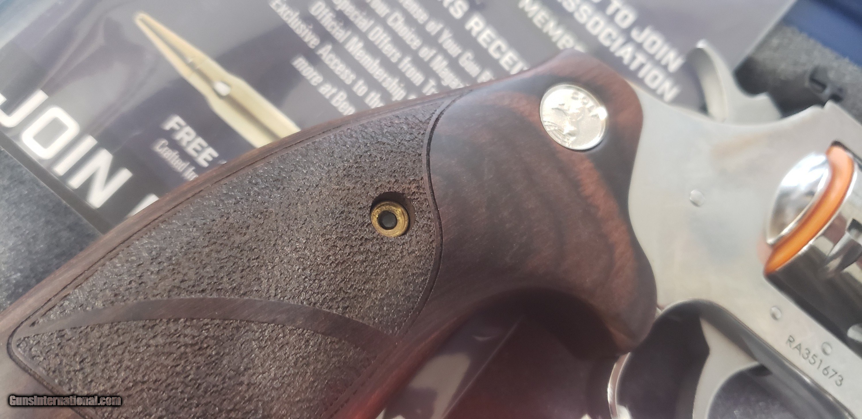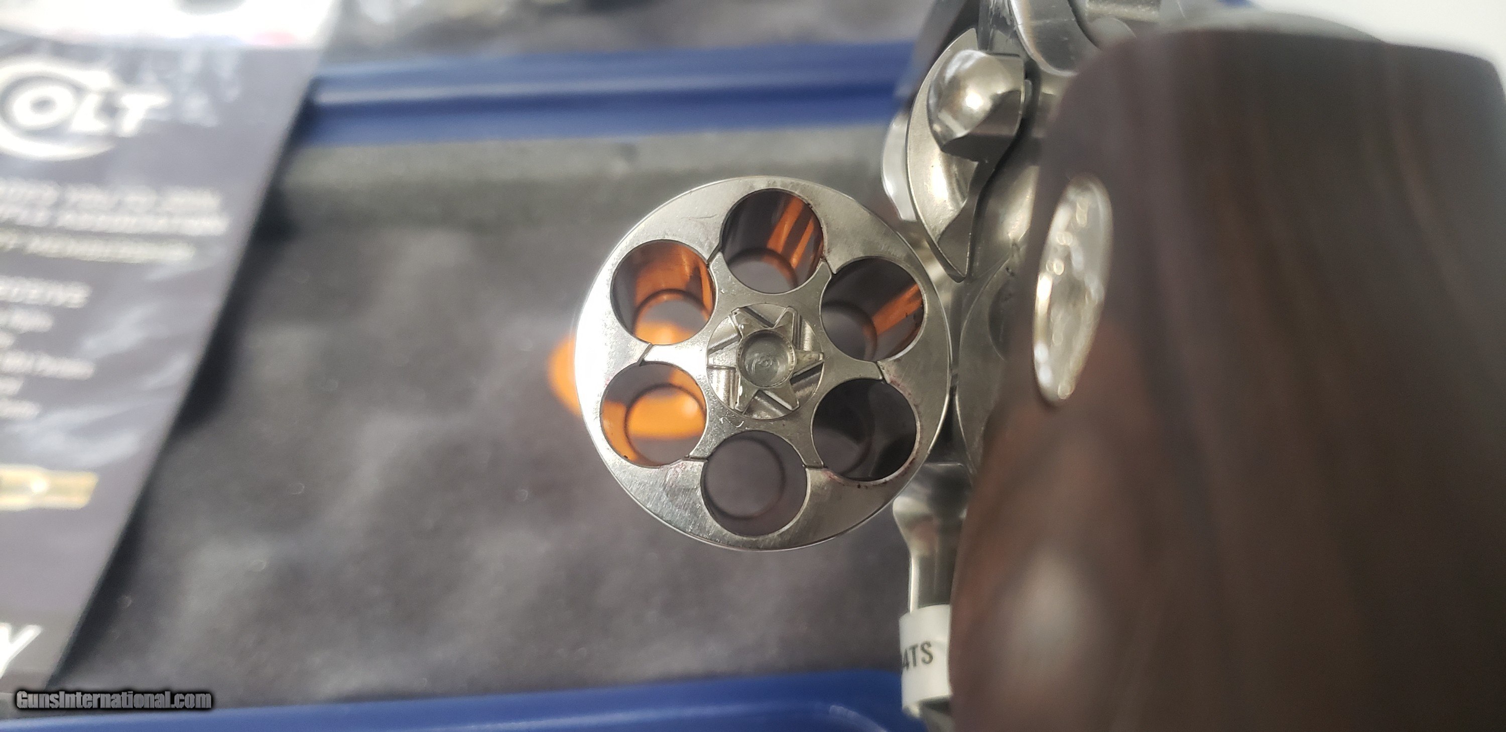 Description: New in box this colt king cobra 357 has a 4"barrel wood grips this is the target model. Thank you and God bless America. SOLD Handgun Caliber: .357 Magnum Manufacturer: Colt Model: King cobra Condition: New Metal Condition: New Wood Condition: New Bore Condition: New Action: Double Finish: Stainless Sights: Adjustable Item Location: Maine |