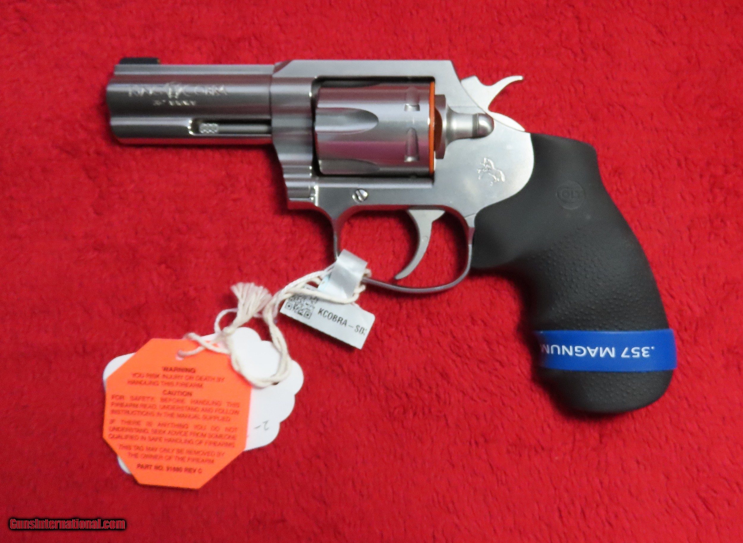 Description: New in box Colt King Cobra 357 Mag. with 3" barrel. Stainless 30.00 Shipping FFL required for shipping; All items shipped Priority Mail Please contact Gloria at 540-580-2762 (after 12 noon eastern time) or email commonwealthcollectiblesyahoo 4% Credit Card Fee Thanks for looking! SOLD Manufacturer: Colt Model: King Cobra Serial Number: RA 211637 Caliber Info: 375 Mag Bore: Excellent Condition: Excellent Barrels: 3 Finish: Stainless |