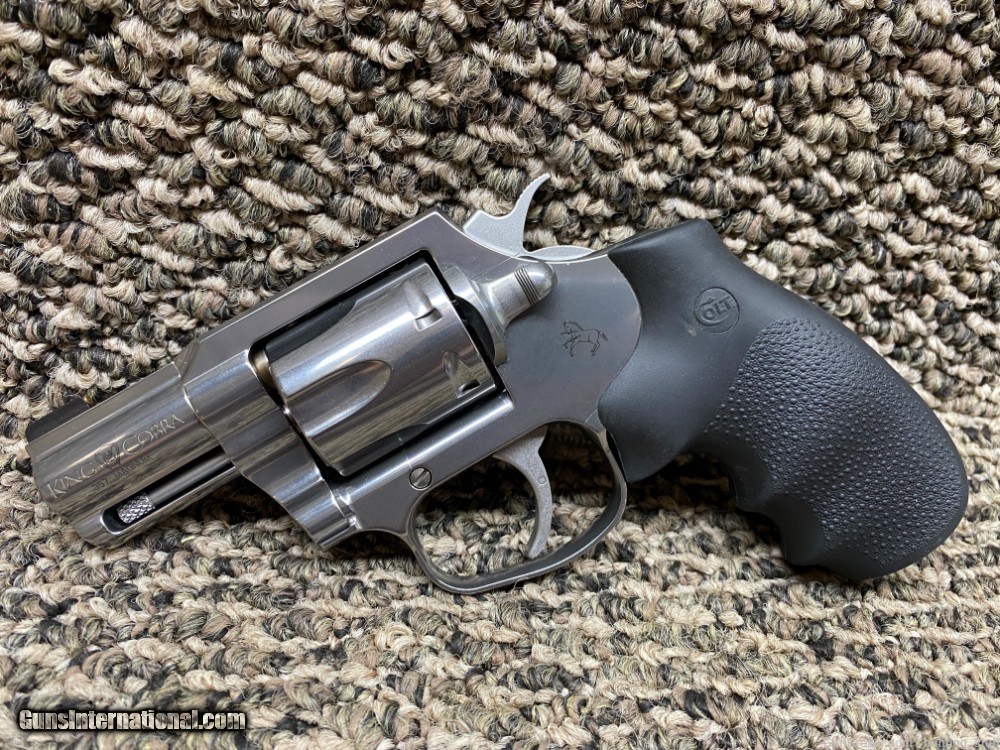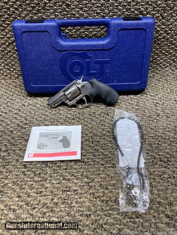 Description: Guns Listing ID: 1246691 This listing is for a USED Colt King Cobra Carry 357 Mag. SS Finish Black Rubber Grips 2\" BBL 6 Shot. This is a used gun, it has been fired and will have residue present. This Colt King Cobra is chambered in 357 Mag, and it will hold 6 rounds in the cylinder. This revolver comes with a 2 inch barrel. It comes equipped with a fixed front sight, and a fixed rear sight. There are wear marks on the cylinder, and there is some light staining on the cylinder face. The action appears to be in good condition, the finish appears to be in good condition, and the bore appears to be in good condition. This revolver comes with an owner’s manual, a cable lock, and the hard case. This would be a great concealed carry revolver. ** DISCLAIMER** THIS FIREARM HAS NOT BEEN TEST FIRED*** SOLD Manufacturer: COLT Model: KING COBRA CARRY Caliber Info: .357 MAG Condition: Used - Non-Certified Barrels: 2 BARREL |