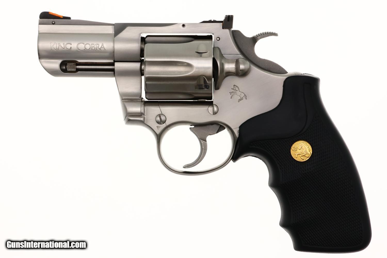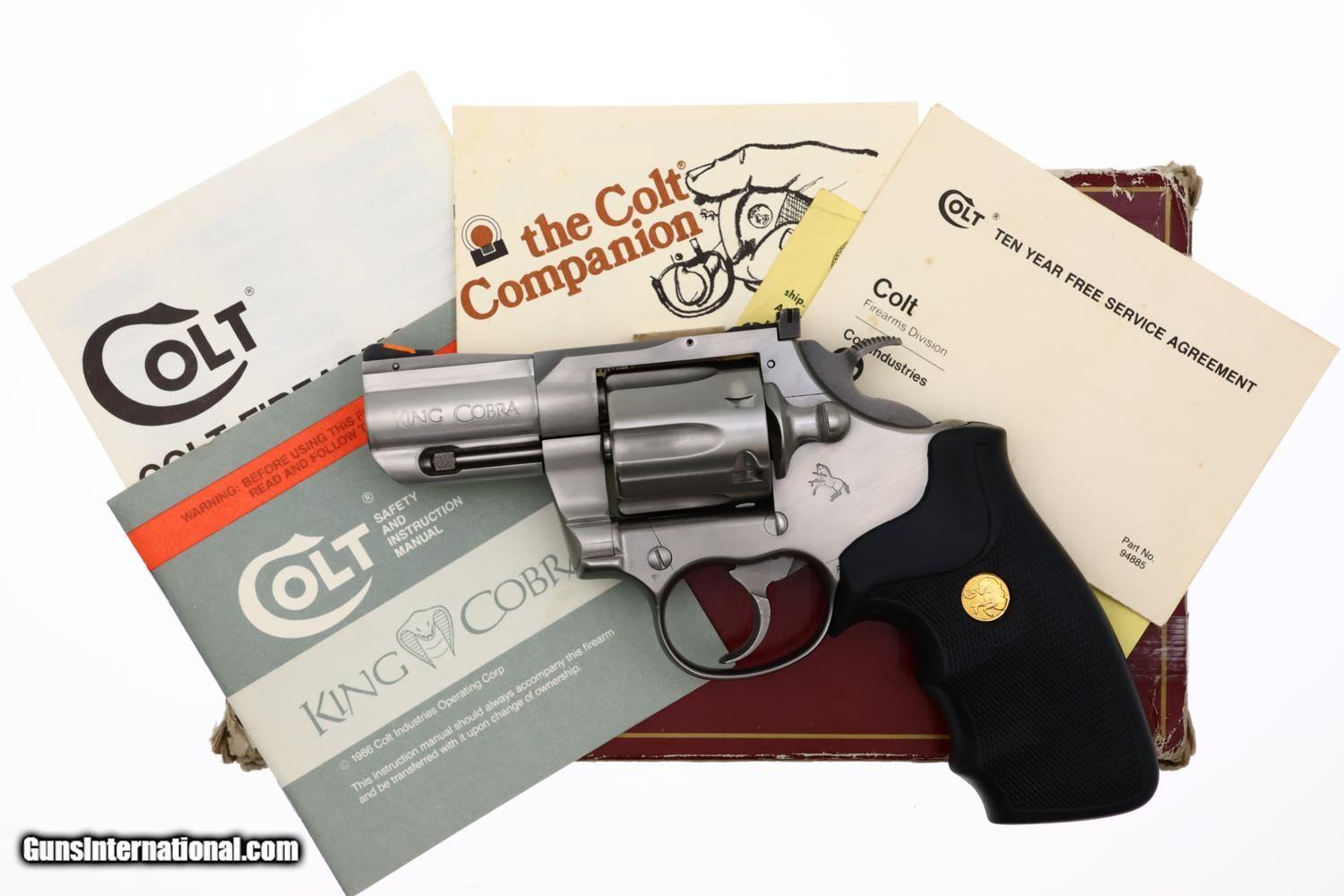 A beautiful example of a Colt King Cobra stainless steel revolver, made 1989, with 2.5" barrel, near new in its original matching box with factory literature. A key revolver for the Seven Serpents collector!