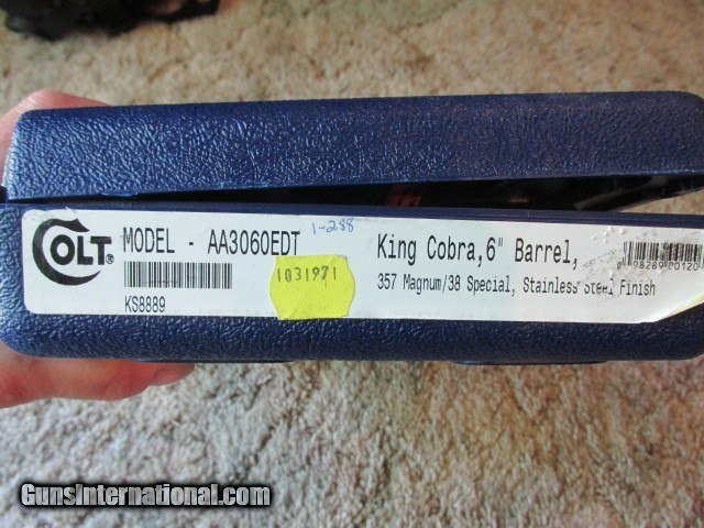 Description: Colt King Cobra Target 357 Mag/38 Special 6" Barrel 6 Rnd Pistol Stainless. Manufacturered in 1997 Great addition to any collection!! Price $2650