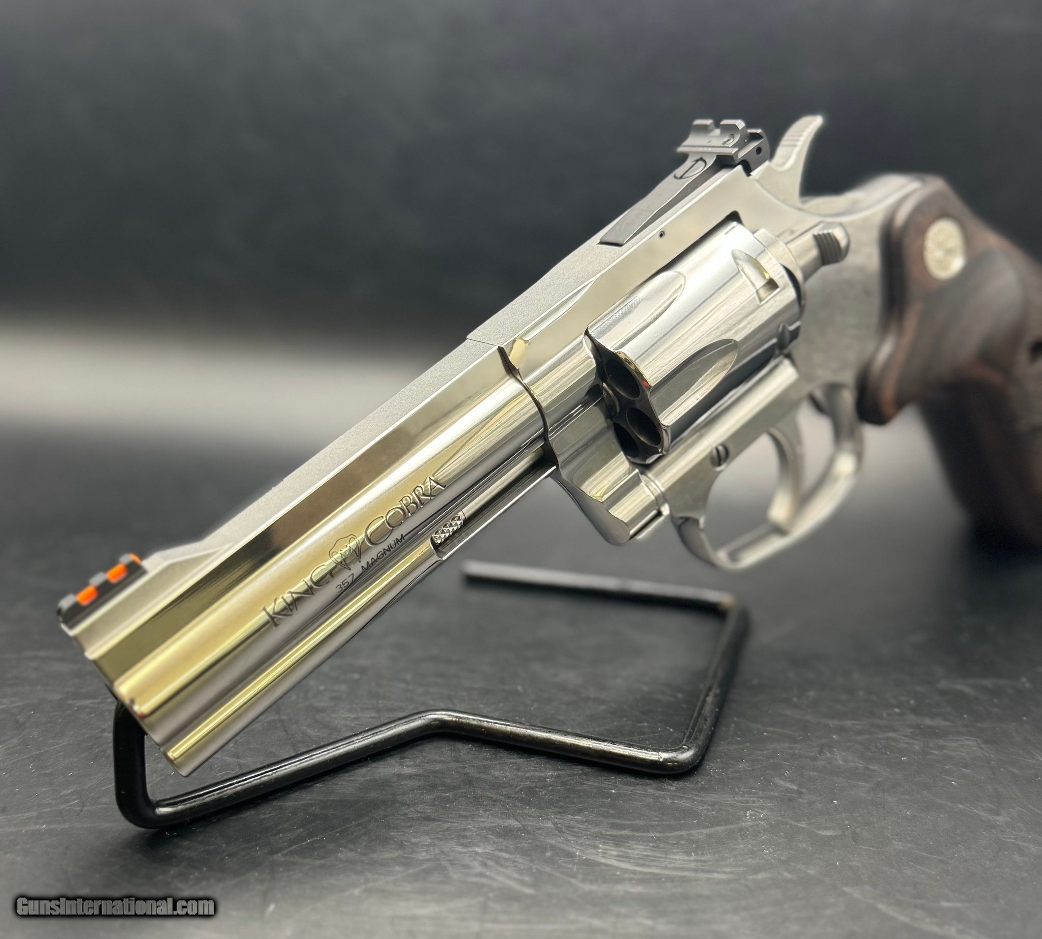 Description: Guns Listing ID: 554987 Up for sale is a Colt King Cobra Target chambered in .357 Magnum, featuring a 6\" barrel, brushed stainless finish, and factory-installed Colt wood target grips. This revolver is part of Colt’s modern King Cobra lineup and delivers both timeless looks and outstanding performance. This particular piece is in excellent condition, showing minimal signs of handling or use. The action is smooth in both double- and single-action modes, and the trigger breaks cleanly. It comes with fully adjustable rear sights for precise target shooting and will also safely chamber .38 Special for lighter recoil sessions. This is a fantastic opportunity to own a premium revolver that’s as functional as it is collectible. SOLD Manufacturer: COLT Model: KING COBRA TARGET Caliber Info: .357 MAG Condition: Used - Non-Certified Barrels: 4" BARREL Action: DOUBLE ACTION Finish: STAINLESS Weight: 2.2 lbs. |