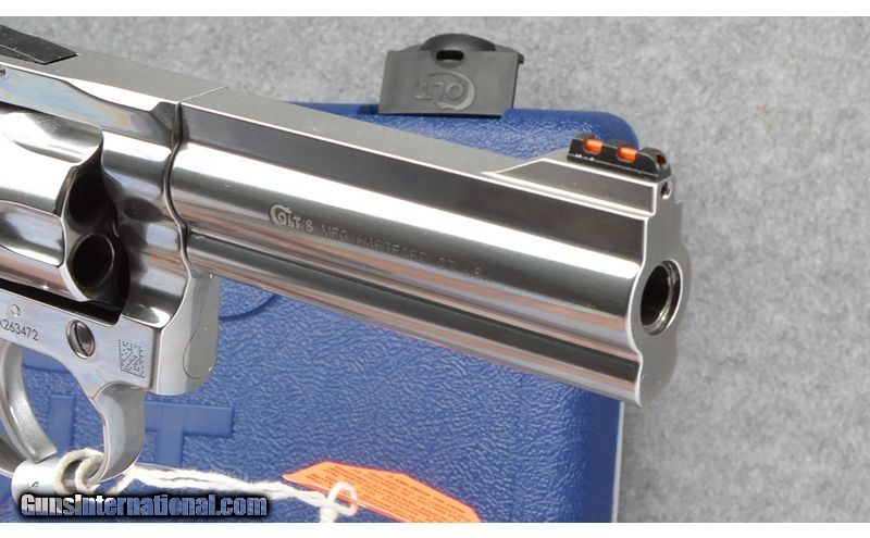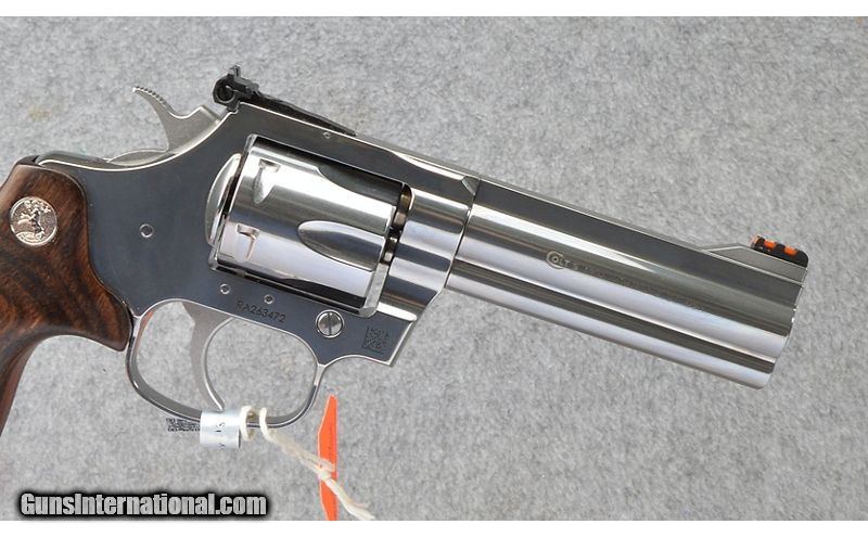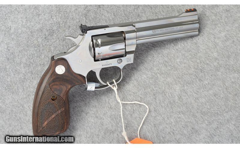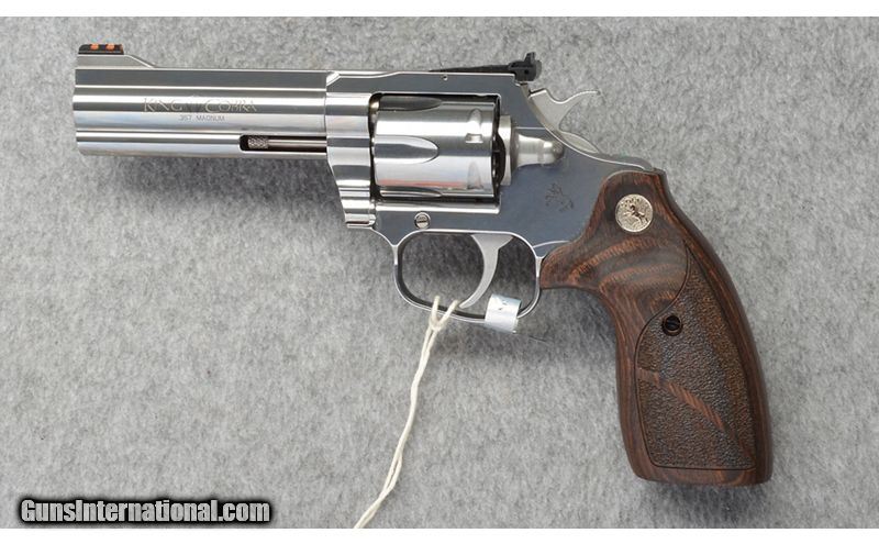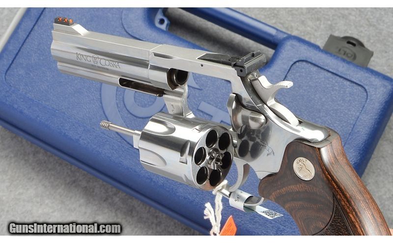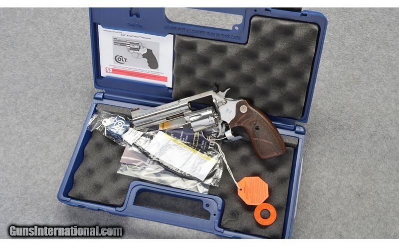 Description: Colt's current production King Cobra Target. NEW in FACTORY BOX. .357 Magnum SOLD Metal Condition: Polished Stainless Wood Condition: Altamont Wood Grips w/ Colt Medallions Bore Condition: NEW Barrels: 4.25 Inch Triggers: DA/SA Weight: 34 ozs. Sights: "Adjustable Rear Sight, Fiber Optic Front Item Location: Buda, TX |