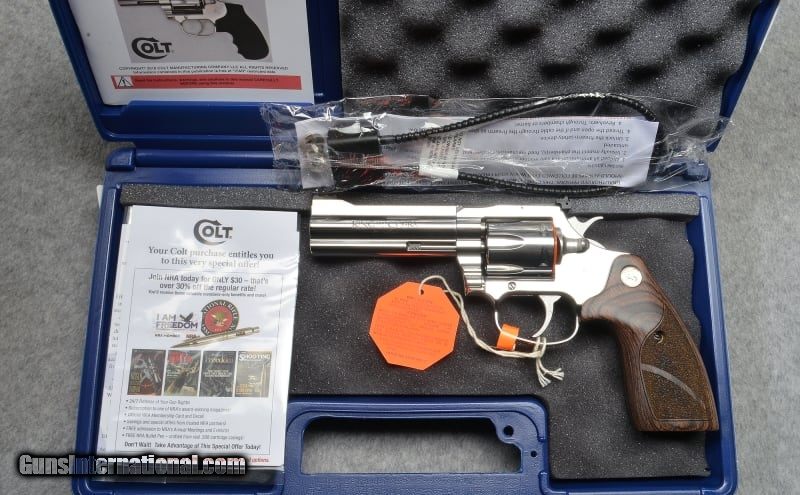 Description: The Colt King Cobra Target featuring a 4" barrel, adjustable rear sight, elevated fiber optic front sight and custom wood medallion grips. Shows minimal handling. Colt Sample Special Buy acquired directly from Colt and "SOLD AS USED". .357 Mag SOLD Metal Condition: Matte Stainless Wood Condition: Altamont Wood Grips Bore Condition: Excellent Barrels: 4 Triggers: DAO Weight: 2.6 Sights: "Adjustable Rear Sight, elevated Fiber Optic Front Sight Item Location: League City, TX |