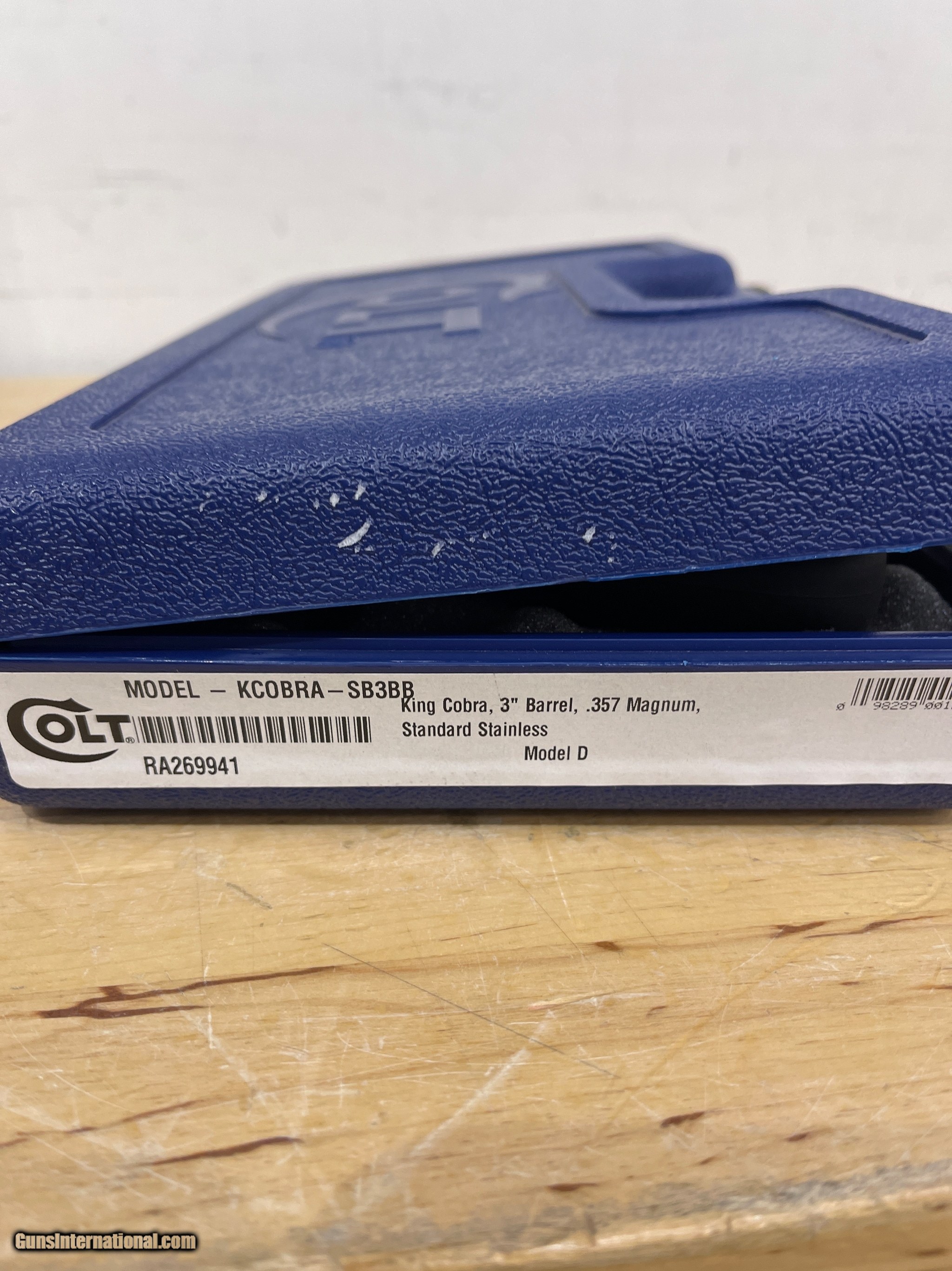 Description: Guns Listing ID: 447679 Mint condition SOLD Manufacturer: COLT Model: KING COBRA Caliber Info: .357 MAG Condition: Used - Non-Certified Barrels: 3" barrel |