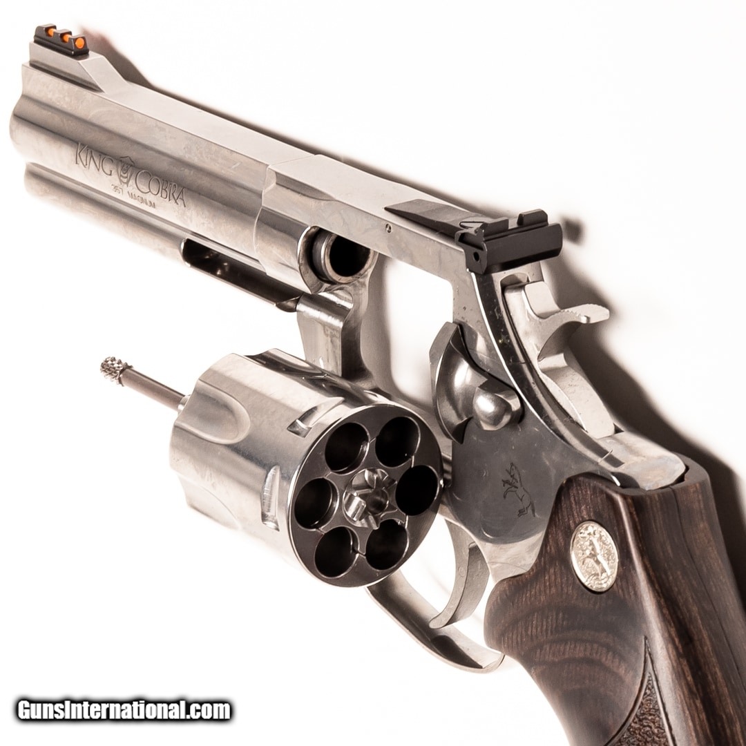Description: Guns Listing ID: 544716 The King Cobra is a proud member of Colt‚‚s legendary \"Snake Gun\" lineup. This specific King Cobra features a 4\" barrel and delivers six rounds of 357 Mag. If you‚‚re looking for a collectible revolver that is a dream to shoot, you can‚‚t beat a Snake Gun. This King Cobra includes the original case and owner‚‚s manual. Serial number: RA258095 SOLD Manufacturer: COLT Model: KING COBRA Caliber Info: .357 MAG Condition: Used - Certified Barrels: 4 BARREL Finish: STAINLESS |