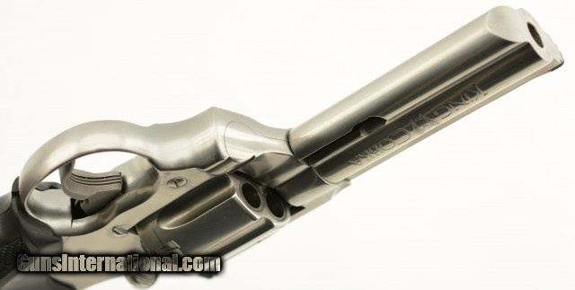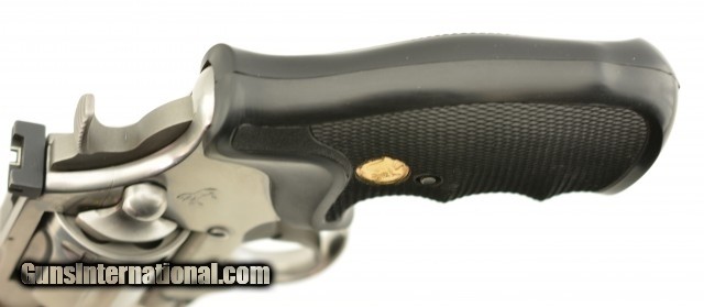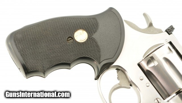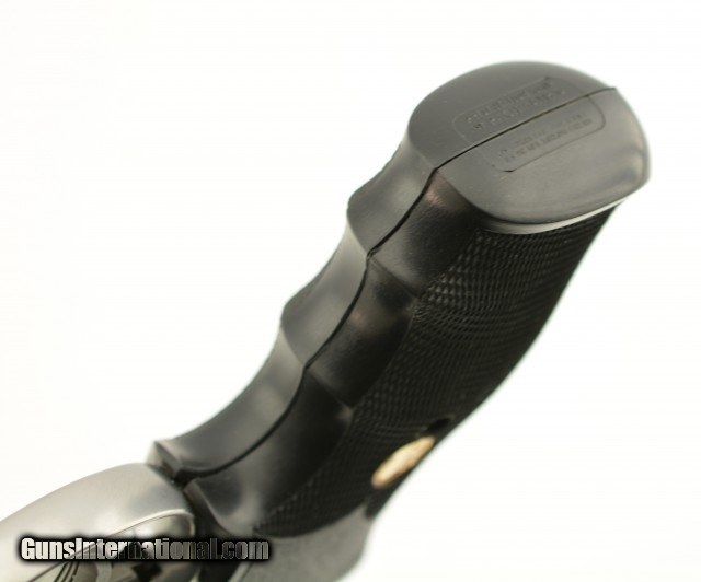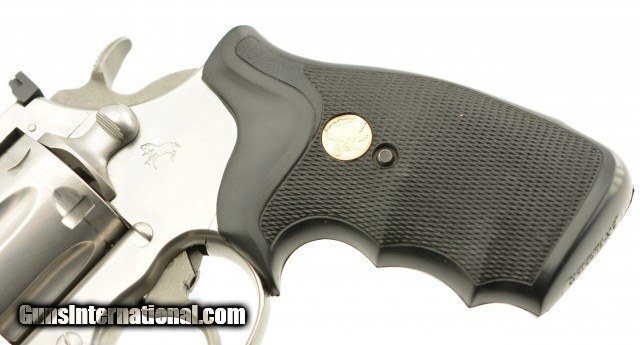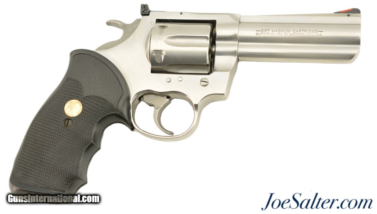 Description: Serial #CK0162, .357 Magnum, 4" barrel with an excellent, bright bore. This late 1980s, brushed stainless steel revolver only has a few very minor surface scratches at the muzzle of the barrel, and a visible turn-ring on the cylinder. The checkered neoprene Colt medallion grips are in excellent, practically unworn condition. The lock-up is tight and the mechanism functions flawlessly. This is a splendid 1980s, .357 Colt "Snake Gun" and is in excellent overall condition. FFL SOLD |