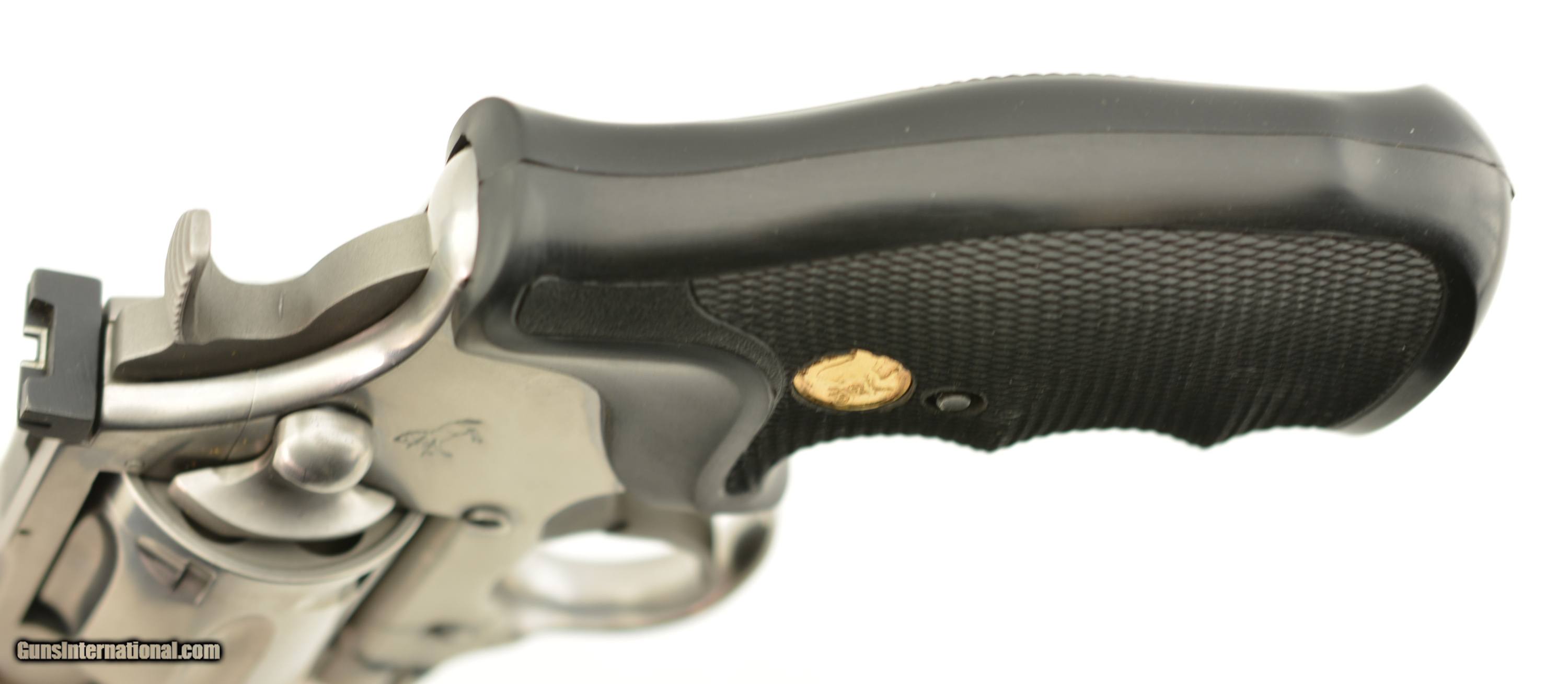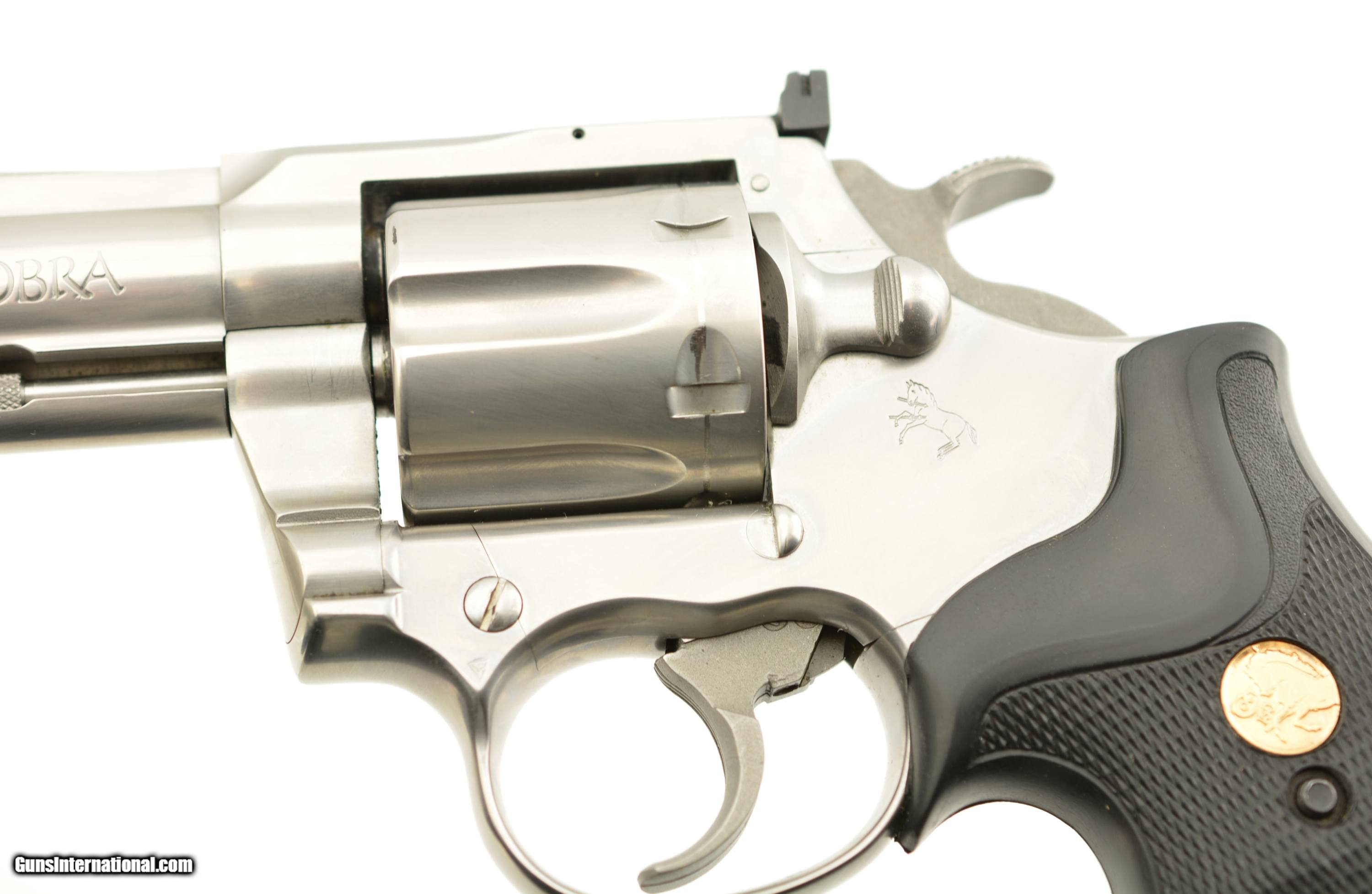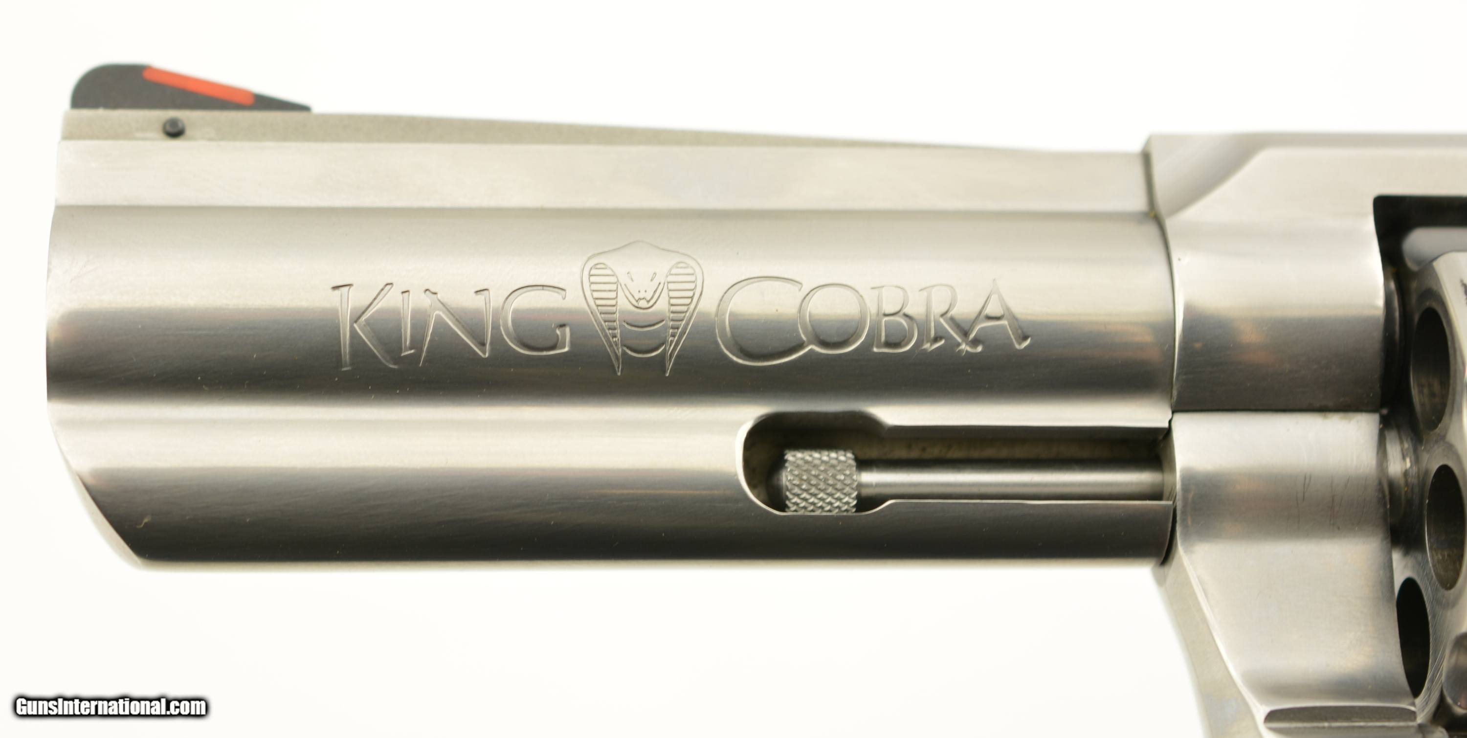 Description: Serial #CK0162, .357 Magnum, 4" barrel with an excellent, bright bore. This late ‘80s, brushed stainless steel revolver only has a few very minor surface scratches at the muzzle of the barrel, and a visible turn-ring on the cylinder. The checkered neoprene Colt medallion grips are in excellent, practically unworn condition. The lock-up is tight and the mechanism functions flawlessly. This is a splendid .357 Colt "Snake Gun" and is in excellent overall condition. FFL SOLD Manufacturer: Colt Model: King Cobra Serial Number: CK0162 Caliber Info: .357 Mag Gauge Info: .357 Mag |