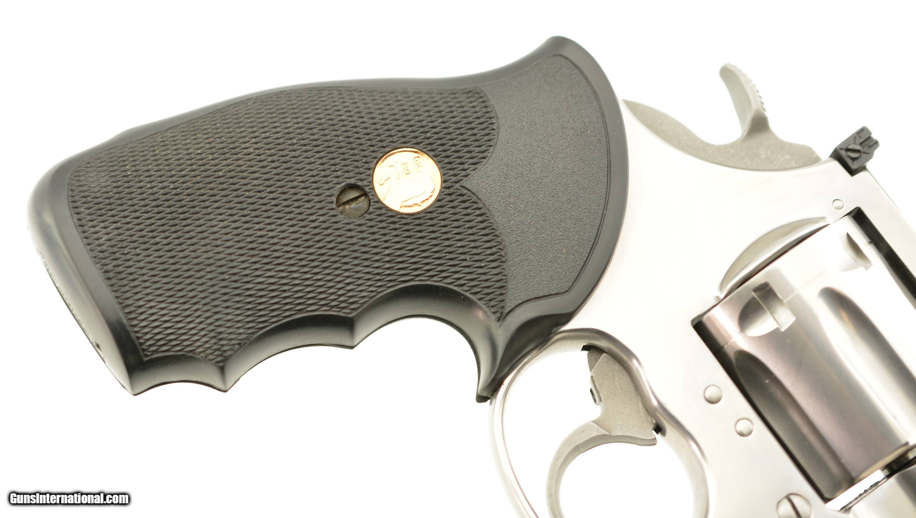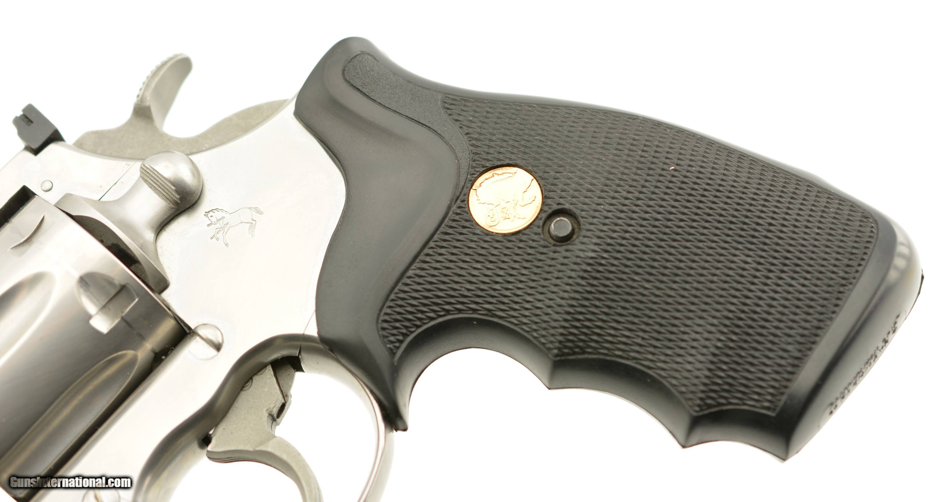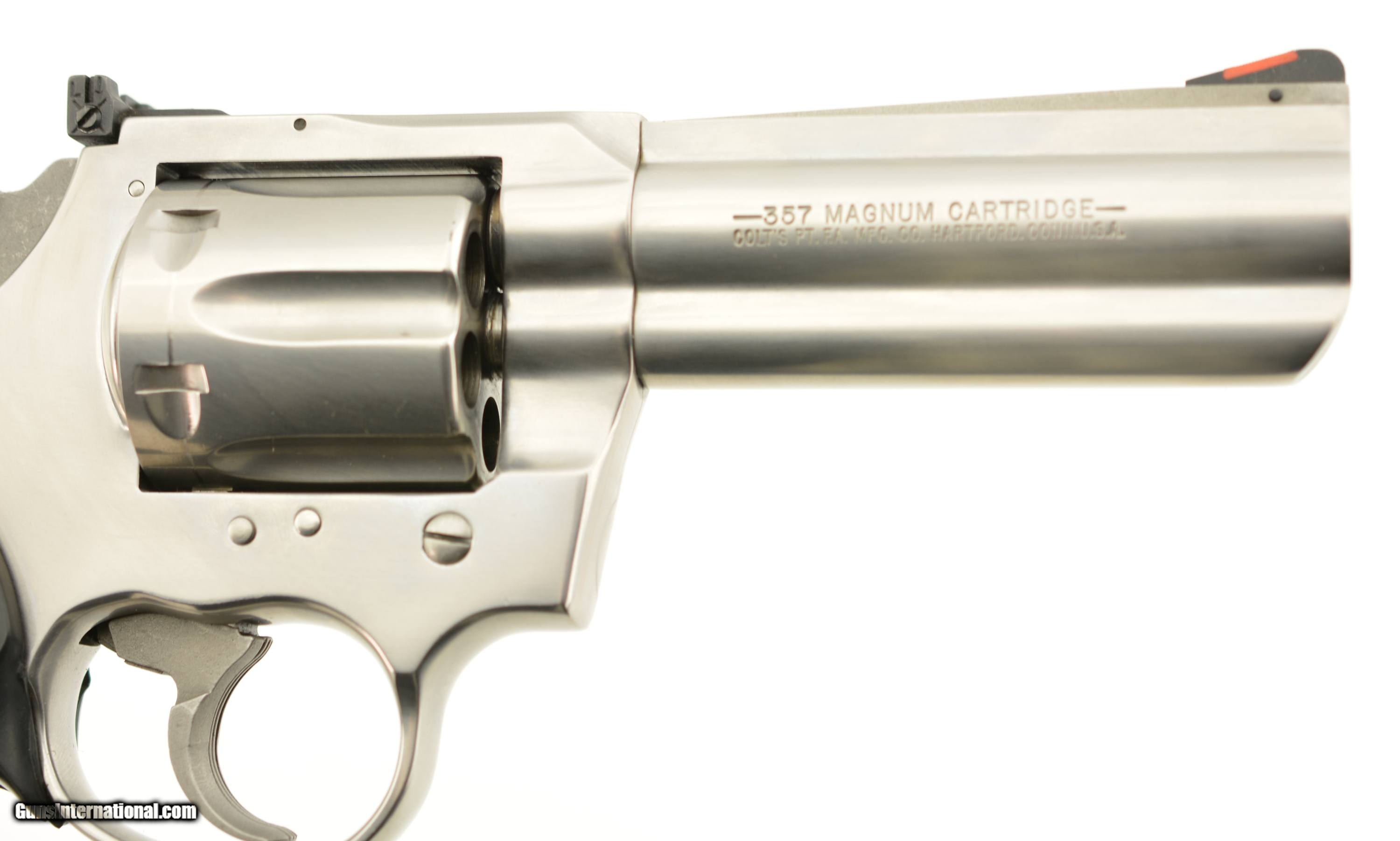 Description: Serial #CK0162, .357 Magnum, 4" barrel with an excellent, bright bore. This late ‘80s, brushed stainless steel revolver only has a few very minor surface scratches at the muzzle of the barrel, and a visible turn-ring on the cylinder. The checkered neoprene Colt medallion grips are in excellent, practically unworn condition. The lock-up is tight and the mechanism functions flawlessly. This is a splendid .357 Colt "Snake Gun" and is in excellent overall condition. FFL SOLD Manufacturer: Colt Model: King Cobra Serial Number: CK0162 Caliber Info: .357 Mag Gauge Info: .357 Mag |