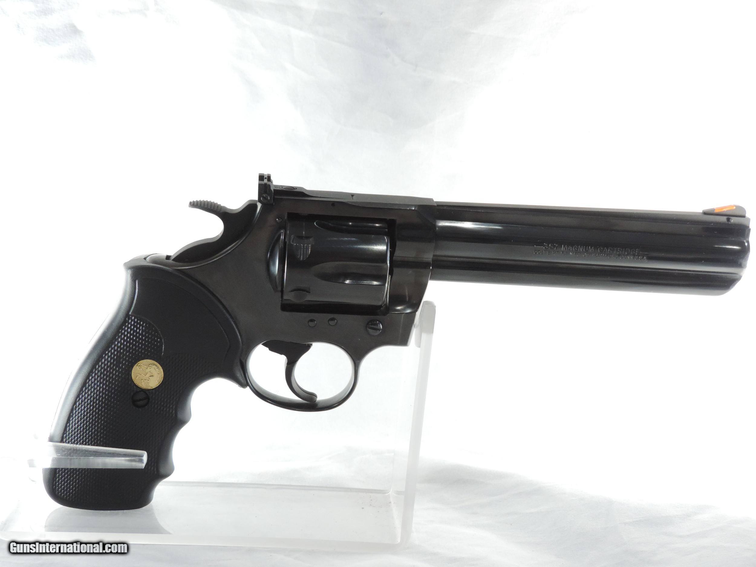 Description: INV. 9259 PRISTINE, COLT KING COBRA CAL. 357 MAG. SER. KV6836, MFG. 1990. THIS ESTATE GUN IS CERTAINLY PRISTINE. IT HAS RETAINED ABOUT 99.99% OF THE ORIGINAL FACTORY FINISH. THE ONLY BLEMISH ANYWHERE IS THE USUAL, BUT VERY SLIGHT CYINDER DRAG RING. THAT'S IT. ALL PARTS MATCH. INCLUDING THE PROPER COLT MEDALLION RUBBER GRIPS. THE CYLINDER FACE, RECOIL SHIELD AND FORCE CONE SHOW ONLY SLIGHT, IF ANY USE. THE BORE IS PRISTINE LIKE THE REST OF THE GUN. MIRROR BRIGHT WITH RAZOR SHARP RIFLING. NOT SPECK OF FROST ANYHERE. THIS BEAUTY WOULD SATISFY EVEN THE MOST CRITICAL SHOOTER/ COLLECTTOR. BESIDES BEING A FINE INVESTMENT IT SHOULD BE A REAL X RING BLASTER ON THE RANGE. VERY MODESTLY PRICED AT....$1975.*** *** 100% SATISFACTION GUARANTEED. To purchase this firearm or if you want to request more information contact us at: Email ckguns[at]ymail[dot]com Phone 201-512-0002 Cell 201-575-6838 FAX 201-215-4759 We accept most major credit cards. Prices shown are Discounted 3% for Cash or Check. The buyer must be familiar with all the laws governing the purchase and the ownership of firearms in their own city and state. The Yankee Armorer, Inc is not responsible for any failure to comply with or observe these laws. The Yankee Armorer, Inc will only ship after full payment and receipt of all required documents. Shipping: Add $35.00 for handguns, $45.00 for long guns. New Jersey buyers are subject to a 7% sales tax. The Yankee Armorer, Inc offers a 3 day inspection period with full refund upon return of intact firearm and in the original condition. The Yankee Armorer, Inc offers a no interest lay away program - 25% down; 25% in 30 days; 25% in 60 days; and full payment in 90 days. Any violation of this policy is subject to restocking and forfeiture of all payments. Any variation from this policy must be agreed to in advance. Unshipped Cancelled sales are subject to a 20% restocking fee. Be advised that all firearms sold by The Yankee Armorer, Inc. or the Gun Exchange, LLC (SELLER) are sold as collector’s items. They have not been fired or tested for safety and must be examined by a license gunsmith prior to use. By purchasing any item from the (SELLER), you are agreeing to hold the (SELLER) free from any damages or lawsuits of any nature. Any item left for transfer or storage will be charged to $25.00 per month, per item from the day of its receipt. Any variation from this policy must be agreed to in advance. Store hours 10:00 am to 5:00 pm Tuesday -Saturday. It's always best to call for appointment. Store 201-512-0002, cell 201-575-6838. SOLD |