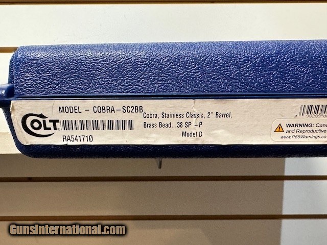Description: Used Colt Cobra, Unfired, Like New, With box, 38 special 6-shot revolver Colt Cobra Classic 38 Special COBRA-SC2BB UPC 098289007162 MPN COBRA-SC2BB Brand Colt Main Model Colt Cobra Model Cobra Classic Caliber 38 Special Capacity 6 Features LL2 Linear Leaf Mainspring Design, +P Rated;Enhanced Grip and Trigger Ergonomics, Polished Cyl Type Revolver: Double Action Action Double Action Finish Stainless Steel Stock Wood With Colt Medalion Sight FT: Brass Bead RR: Frame Trench Receiver Bead Blasted Stainless Steel Frame Barrel Length 2 Overall Length 7.2 Weight 25 oz Msrp 749 Buyer pays shipping Millers Gun Center Located in New Castle, Delaware "Home of TAX-Free shopping" No Credit Card Fees Send Gun international inquiry and then call 302-328-9747 to complete your purchase SOLD Handgun Caliber: .38 Special Manufacturer: Colt Model: Cobra Serial Number: RA541710 |