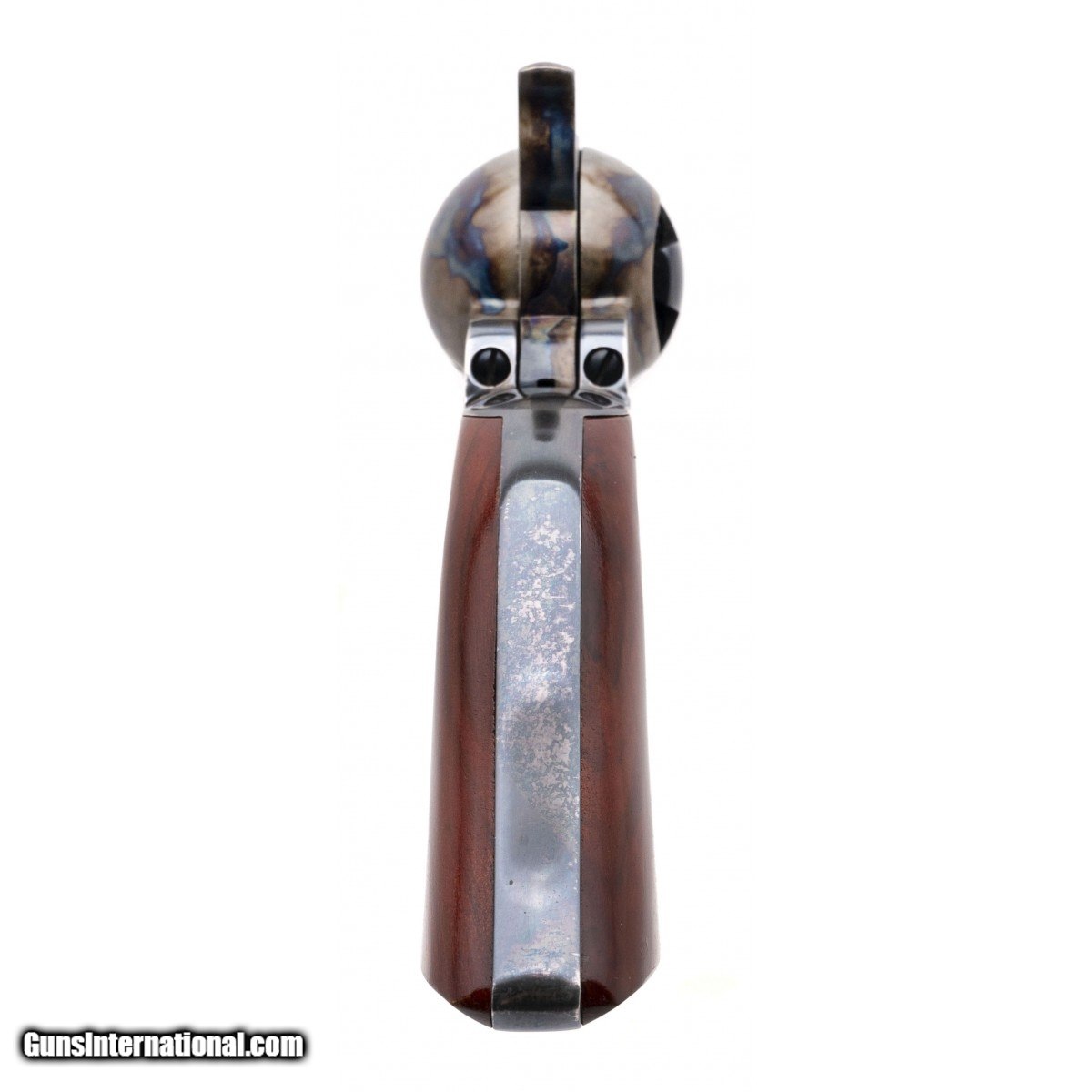 Description: " SN:5974. Made in 1971. .36 Caliber with a 7.5" octagon barrel. Bore is bright with strong rifling. Early 1851 Navy 2nd Gen. Finish is in very good condition with minor wear noted on the barrel with vibrant case colors. Grips are in near excellent condition with minor handling wear. Comes with box. Overall very good plus condition. SOLD |