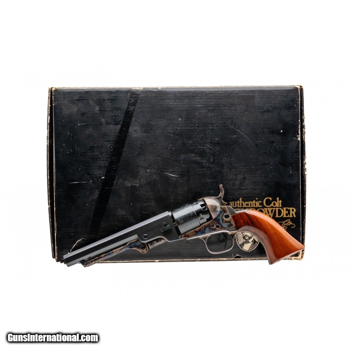 SN: 56461. Made circa 1980's. .36 caliber with a 5.5"" octagon barrel. Bore is excellent. Colt 2nd gen 1862 Pocket Navy revolver. Case hardened frame and loading lever. Cylinder is engraved with stage coach scene and walnut wood grips. Comes with authentic Colt blackpowder series box. Overall condition is excellent.