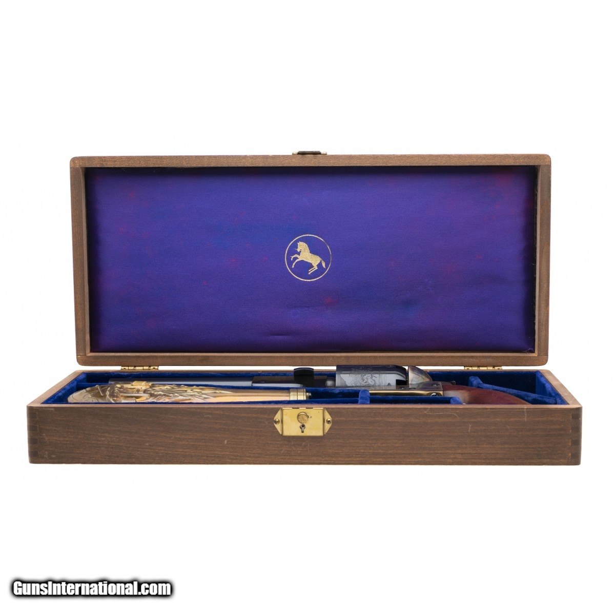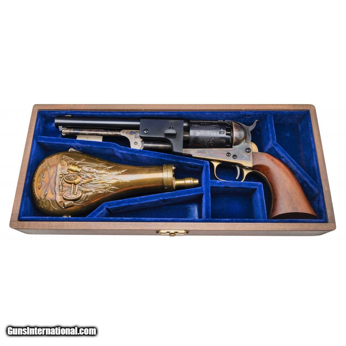 Description: " SN: 21240. 1980's production .44 cal percussion with a 8"" barrel. 2nd Gen Blackpowder Series revolver in excellent condition. Comes in wooden presentation case with flask. SOLD |