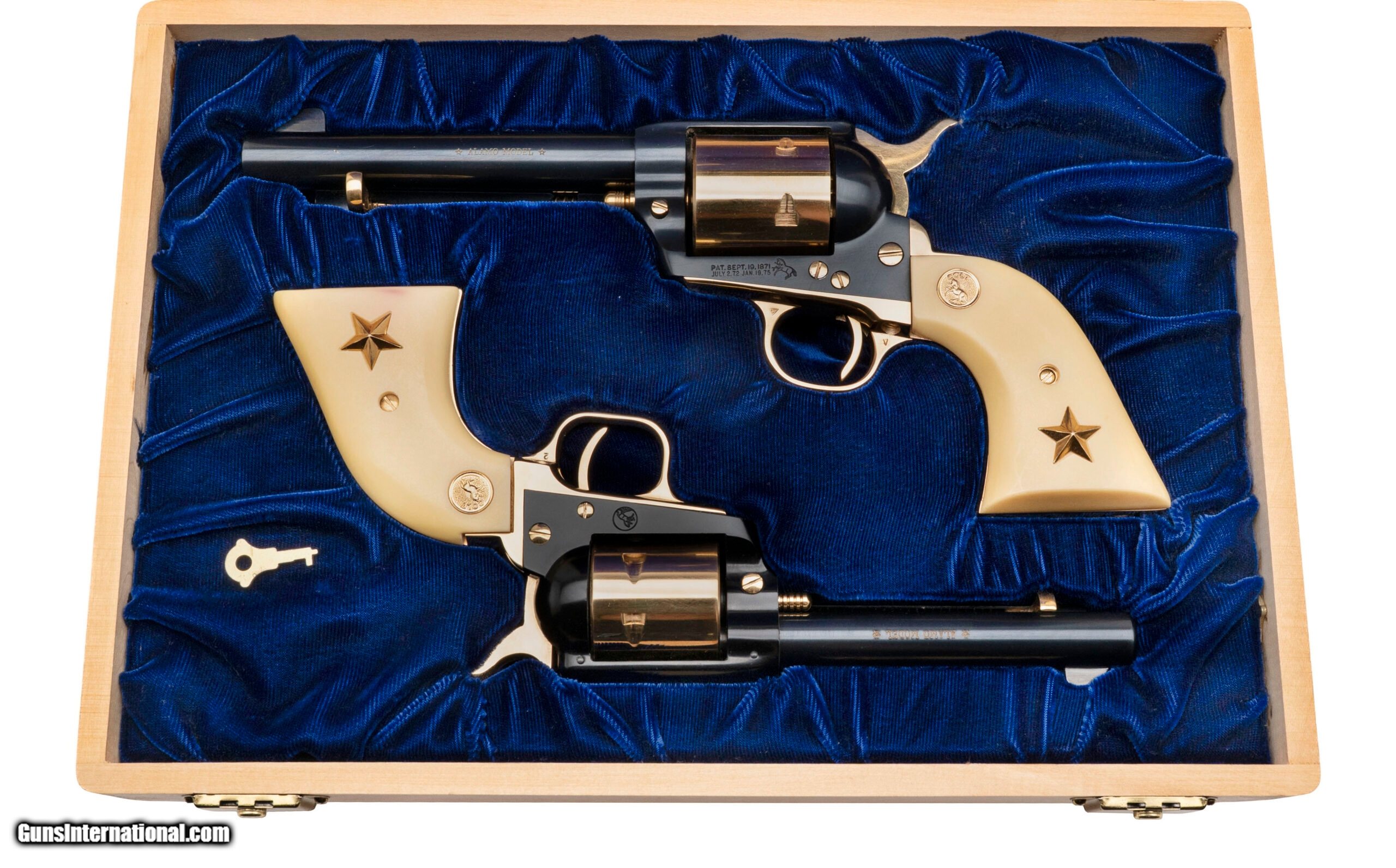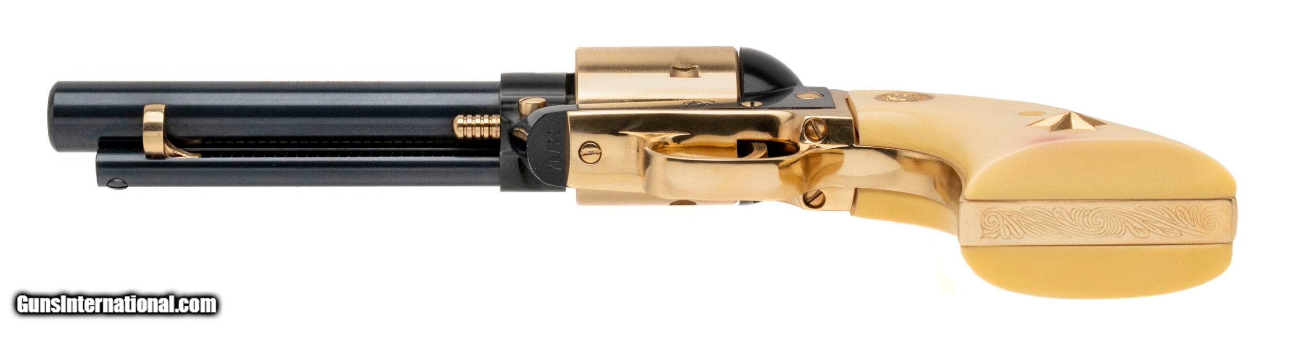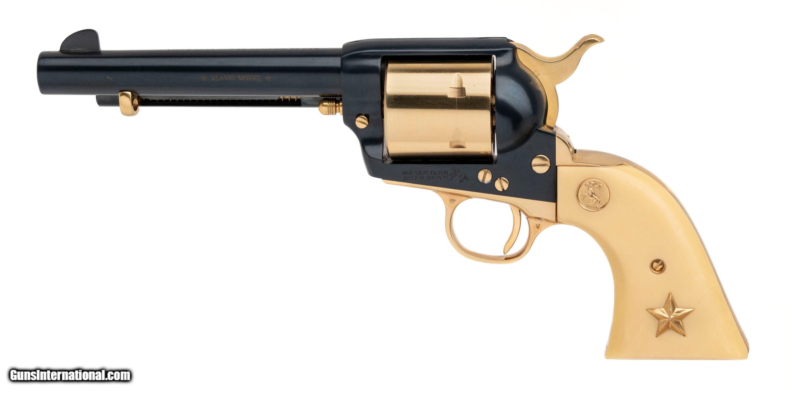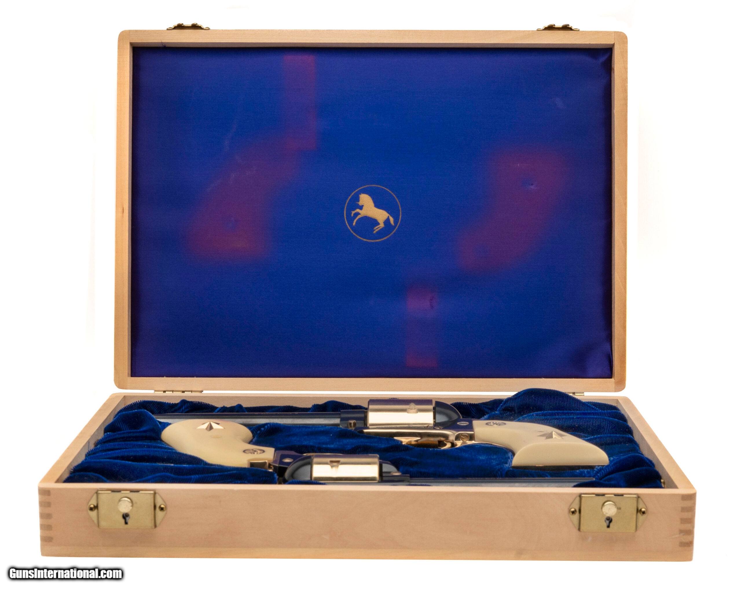 Description: "SN: 76A22 and 76A45, Colt “Texas Alamo Two-Gun" Commemorative. Texas Alamo two-gun commemorative set of one Colt Single Action Army .45 caliber revolver and one Colt Single Action Army .22 caliber revolver, each has matching numbers. Issued in 1967 only 250 two-gun sets were made. A very desirable Colt commemorative. Dallas Location Price: $3,495.00 Contact Seller |