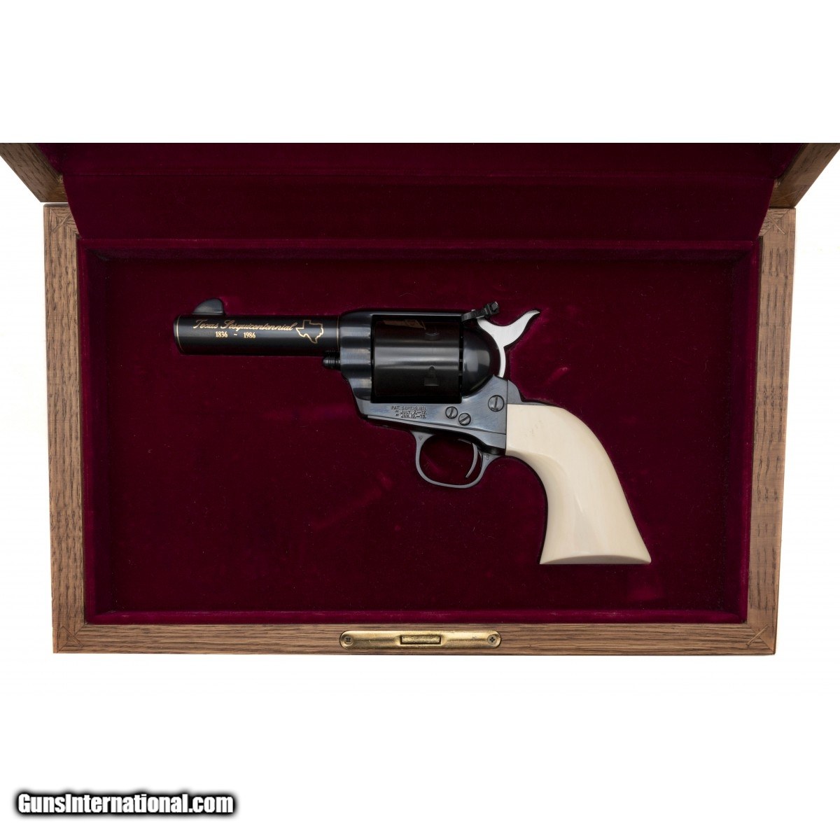 Texas Sesquicentennial commemorative Sheriffs model with ivory grips. 1986 issue. Comes in wooden presentation case.