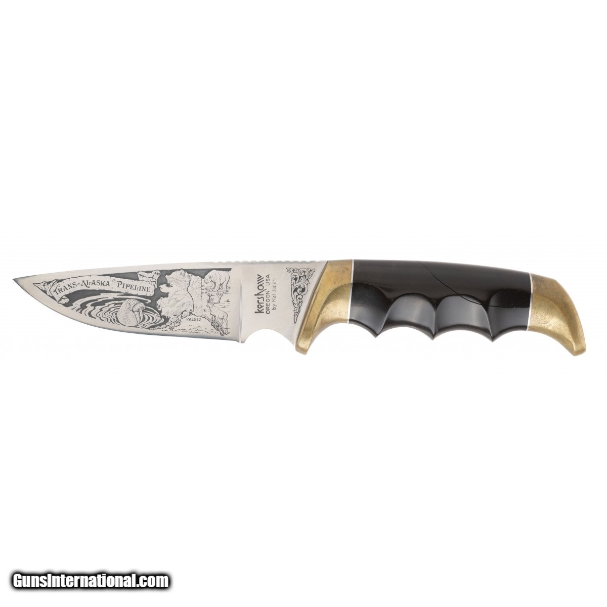 Description: " Trans Alaska Pipeline Colt Single Action .45LC commemorative revolver. 1977 issue, only 802 made. This is No. 471, with etched Kershaw Knife and presentation case. SOLD |