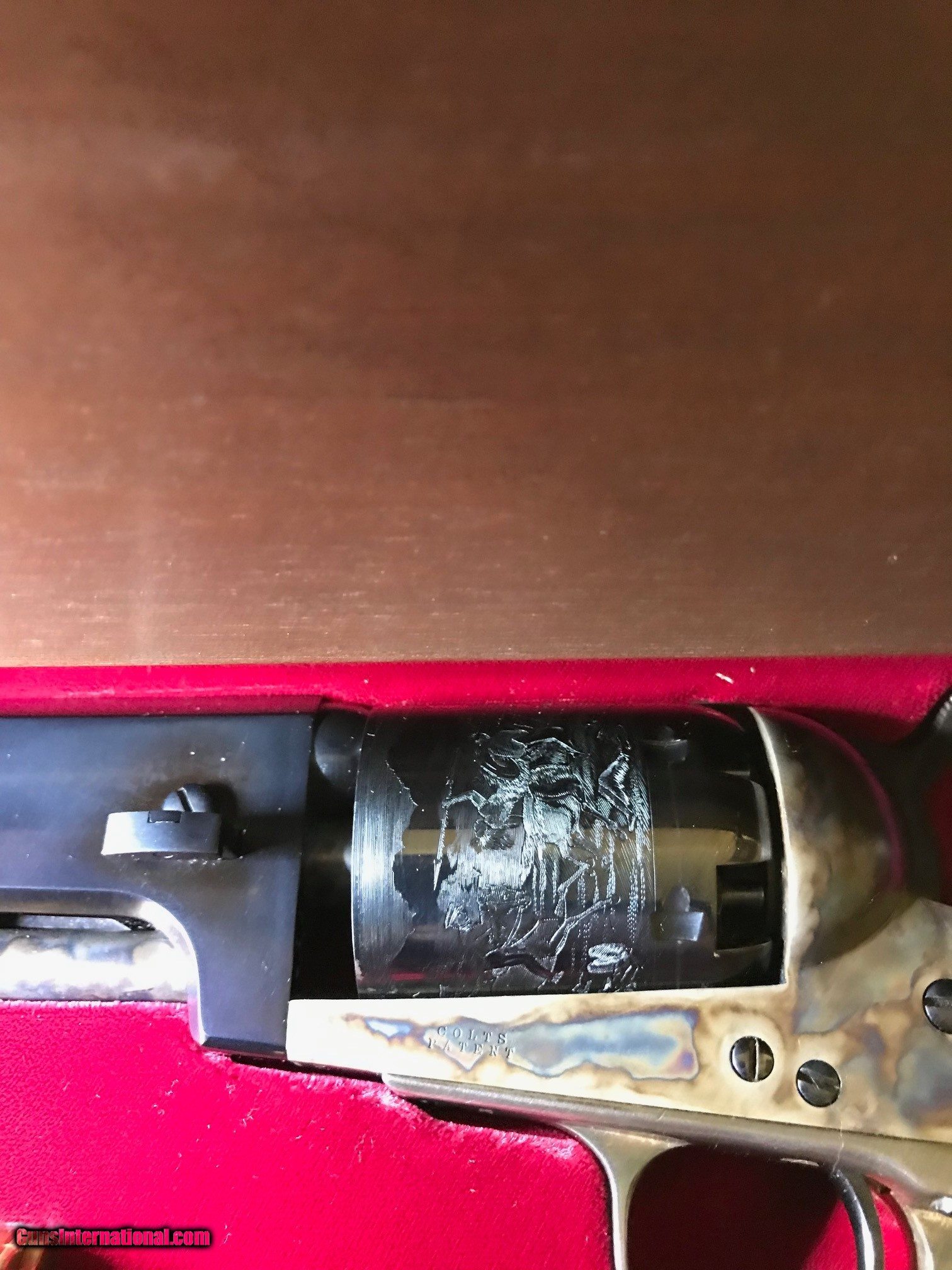 Description: SOLD PENDING FUNDS: Colt Bicentennial Commemorative 3-Gun Set. The set includes a Colt Python, Single Action Army, and a Dragoon revolver with accessories. All guns have matching serial numbers (1257), and have a beautiful Royal Blue and case colored finish. Only 1776 sets were made. The set is in a three-drawer walnut display case with Colt Armsmear book. These are all new in case unfired and unturned. Mechanics, bore, and finish all original and perfect. This is a very fair price since the last three sets advertised were $9000, $9500, & $10000 with one other set selling last week on Gun for $13,075. Please see my other listings for more collectable firearms. SOLD |
