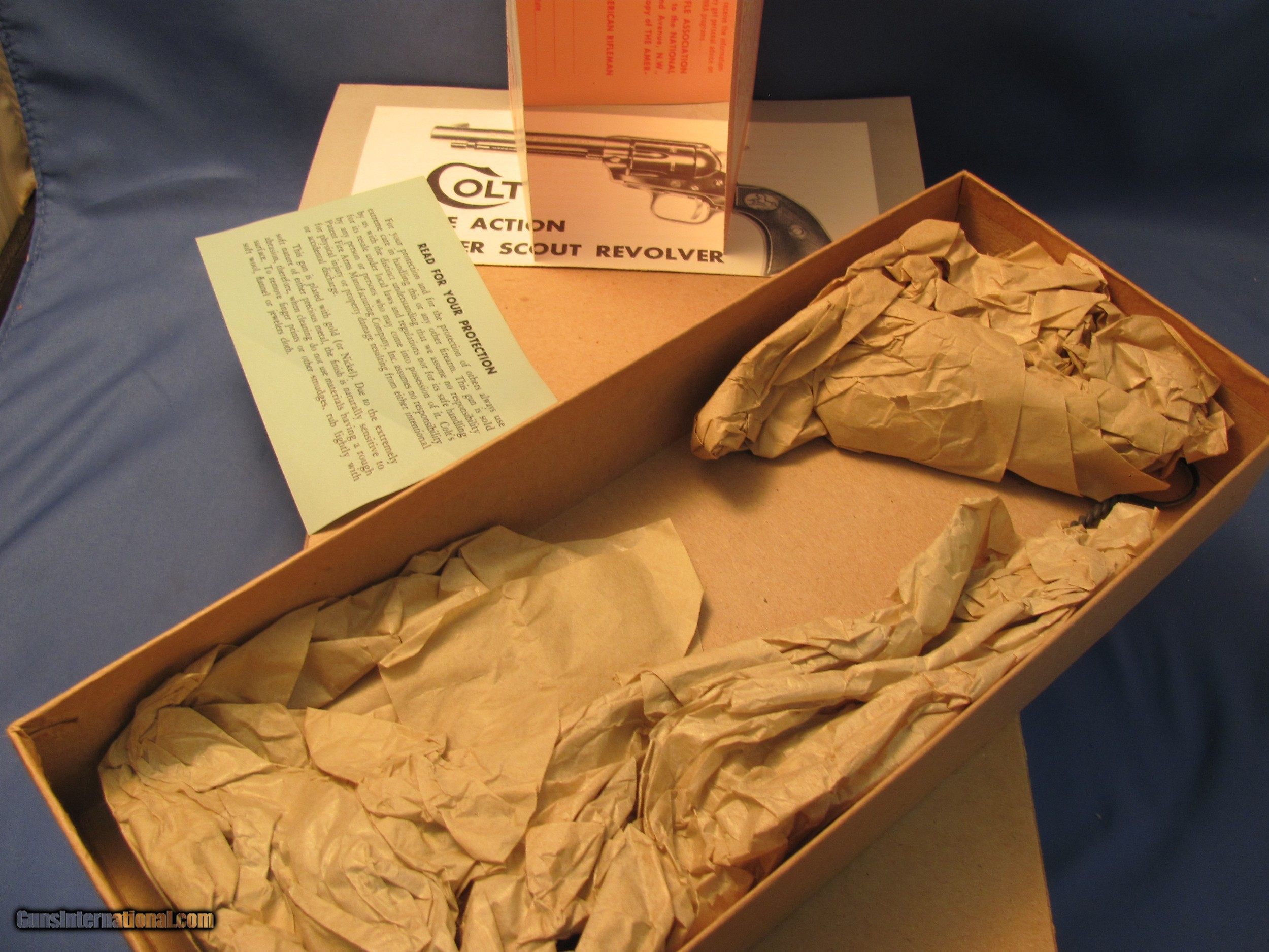 Description: THIS IS A COLT 1863 1963 CENTENNIAL COMMEMORATIVE BATTLE OF GETTYSBURG FRONTIER SCOUT 22LR SINGLE ACTION 6-SHOT 4-3/4” REVOLVER WITH ORIGINAL CASE, SLEEVE AND BOX PEOPLE THROW AROUND THE TERM “MINT” ON THESE SITES WAY TOO LOOSELY. THE REASON WE HAVE OVER ‘3300 GUN SALES’ ON WITH ONLY 2 BAD RATINGS IS BECAUSE #1 WE DON’T LIE AND #2 YOU CANT PLEASE EVERY KEYBOURD WARRIOR. WHEN WE HAND A NEW PISTOL TO A CUSTOMER HERE AT THE STORE WE ALWAYS SAY, “PLEASE DON’T RACK IT, THAT WILL PUT A SLIDE MARK ON IT” A SLIDE-MARK IS ONE THING THAT CAN DEGRADE A GUN FROM BEING MINT. MINT IS MINT, MADONNA SINGS A SONG TITLED “LIKE A VIRGIN”…. MADONNA ISN’T A VIRGIN. NOW HAVING SAID ALL THAT, THIS UNFIRED REVOLVER IS ABOUT AS NICE A SPECIMEN AS YOU COULD POSSIBLY FIND LOOKING NEW LIKE IT DID ON A GUN STORE SHELF IN 1963. BUT IF YOU WENT OVER IT VERY CAREFULLY YOU WOULD BE ABLE TO FIND THE SLIGHTEST FLAWS. AS SHOWN IN THESES MANY CLOSE UP PHOTOS WITH NOTHING ELSE UNDERSTAND THAT WE WILL PUT A SIGNATURE ON THE PACKAGE SO IT WONT GET LEFT ON A PORCH. DUE THE FAST PACE AND VOLATILITY OF THE CURRENT GUN MARKET THERE IS NO INSPECTION PERIOD OFFERED OR GIVEN SO BUY KNOWING THAT BUYER PAYS A FIXED AMOUNT OF 35.00 INSURED SHIPPING TO THE LOWER MAINLAND STATES, ALASKA, HAWAII OR PUERTO NO SHIPMENTS OUTSIDE THE USA. MISSOURI RESIDENTS DO PAY A 8.575% SALES TAX. SALES TAX ASLO COLLECTED FOR;