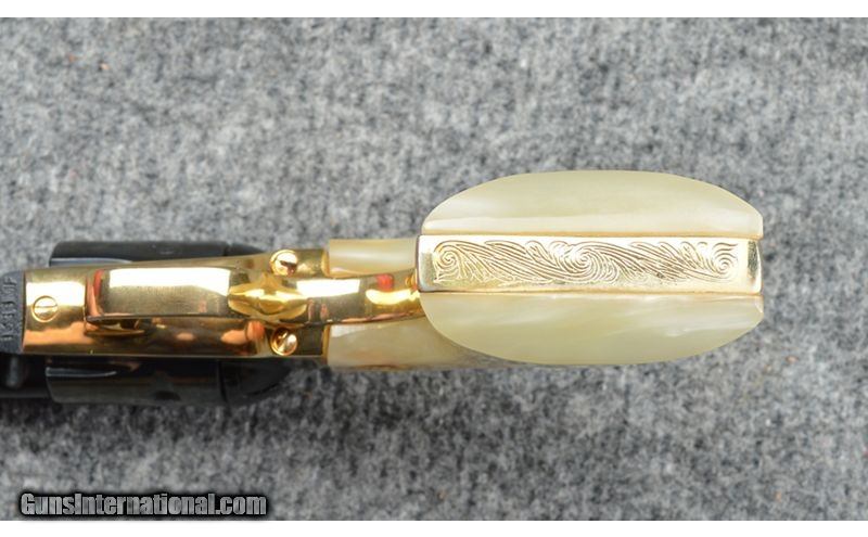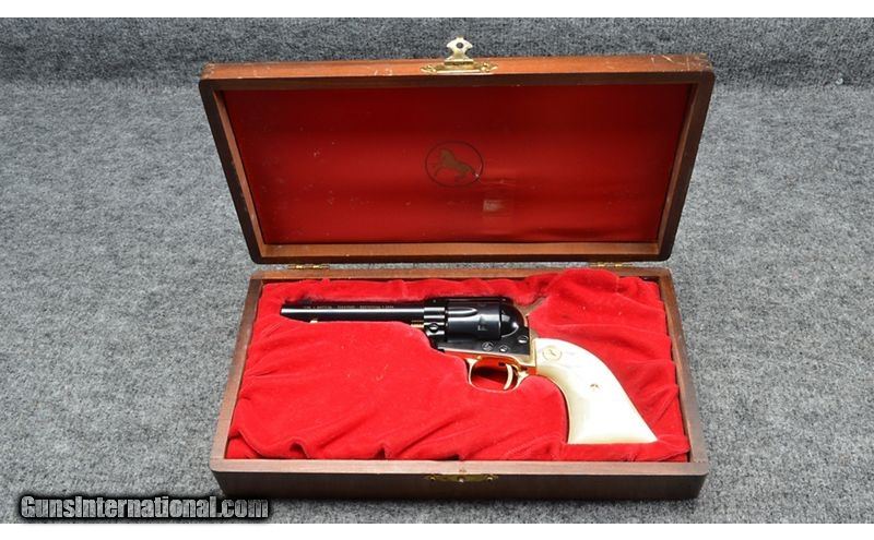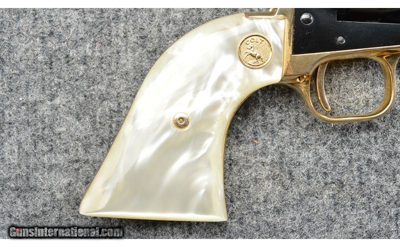 Description: This Colt revolver is in excellent condition. The faux pearl grips and the metal all show minimal handling wear. Includes wood collector's case for easy display. .22 Long Rifle SOLD Metal Condition: Excellent Bore Condition: Excellent Barrels: 5 Triggers: Single Action Weight: 1.95 lbs Sights: "Fixed front blade, notch rear. Item Location: Gainesville, VA |