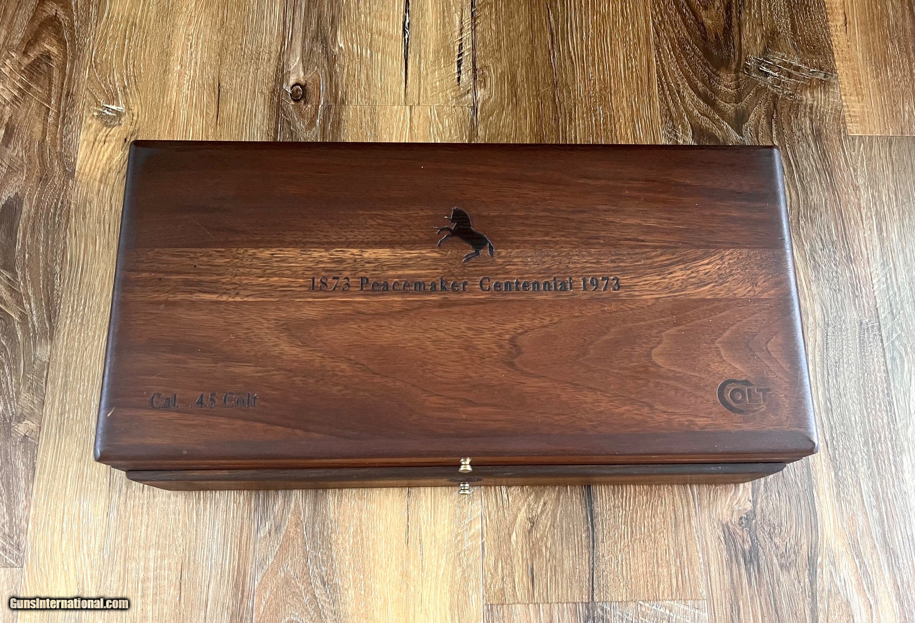 Description: A beautiful set of Colt 1873-1973 Centennial Commeratives. Matching PC1298 & 1298PC serial numbers. Cylinders never been turned. Shipping included to CONUS. Alaska & Hawaii contact for shipping quote. Shipments outside of WV to FFL only. SOLD Curio/Relic: Yes Handgun Caliber: .44-40 Winchester (.44 WCF) Manufacturer: Colt Model: SAA Serial Number: 1298PC Barrel Length: 7 1/2 Condition: NIB Metal Condition: NIB Wood Condition: NIB Bore Condition: NIB |