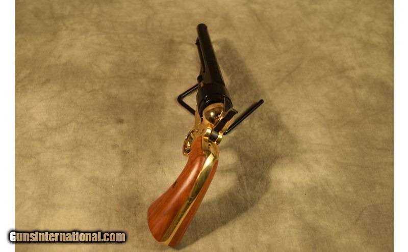 Description: This gun is made for presentation but has the ability to be taken apart and a single 22 short shell can be used and shot. The cylinder only is completely finished for 1 round, all the other cylinder holes are not completely machined. The push rod does not function and is a part of the frame. This collectible commemorative firearms have the appearance of a Colt 1860 Percussion Revolver .22 Long Rifle SOLD Chambers: 22 Short Metal Condition: Very good little to no signs of wear Wood Condition: Very good little to no signs of wear Barrels: 6 Sights: Front blade sight Item Location: Chesterfield, MI |