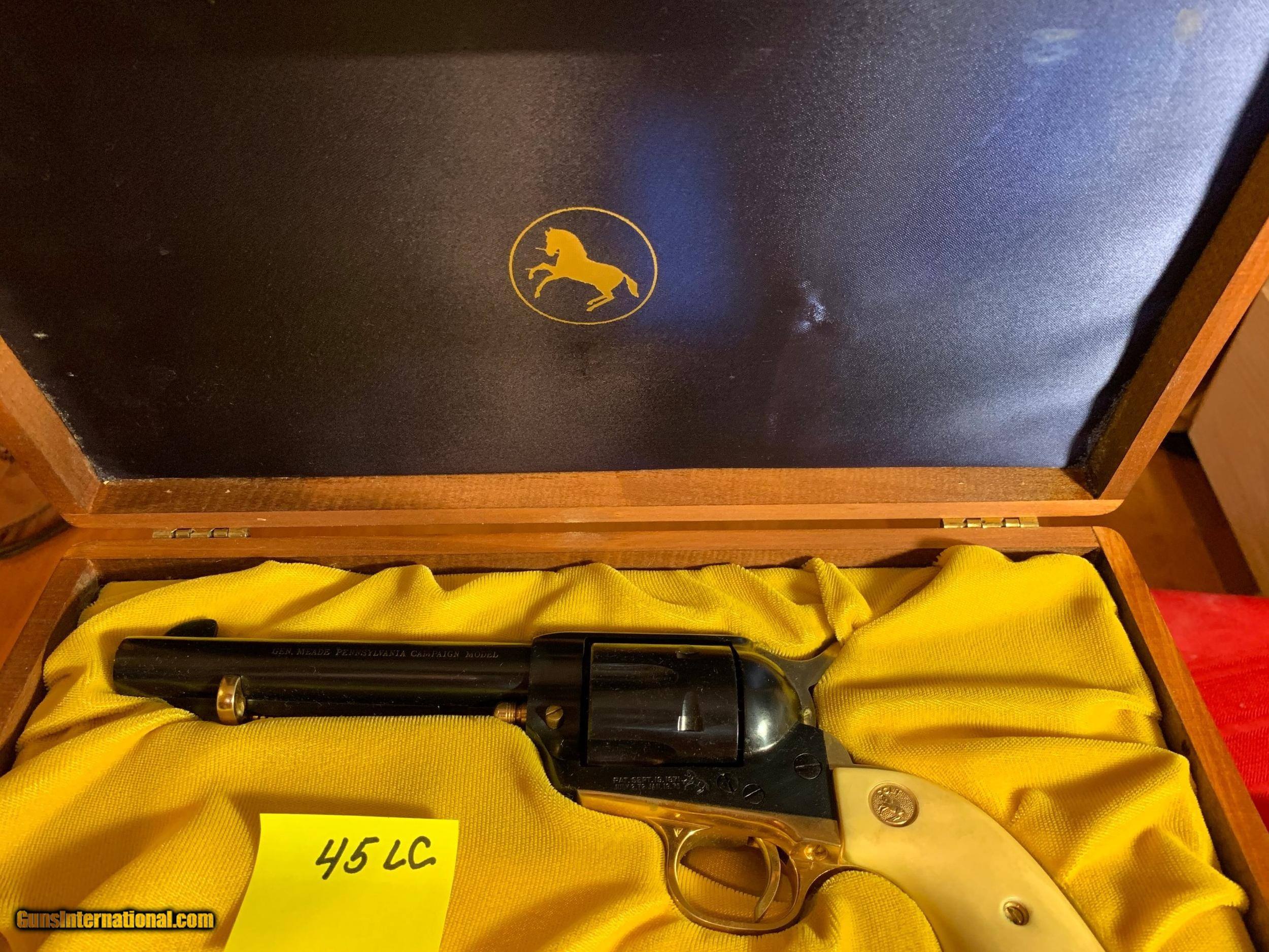 Description: New in presentation case SAA Colt 45 caliber. Faux ivory grips with gold accents. SOLD Curio/Relic: Yes Handgun Caliber: .45 Colt |
