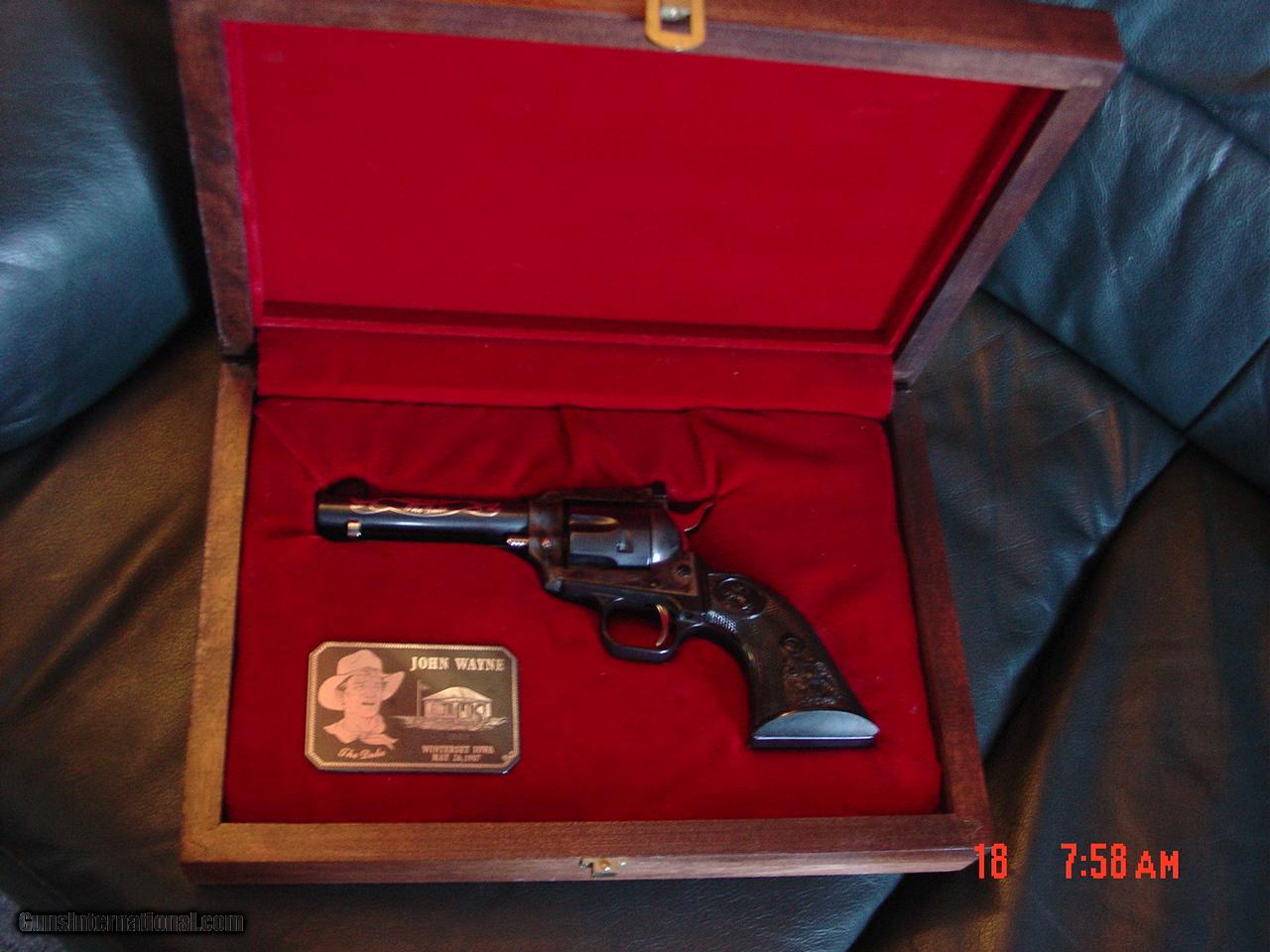 Colt John Wayne The Duke 22LR,New Frontier,Sterling silver inlays,& sterling plate in fitted wood case,1986,unfired,& as new,case hardened frame-aweso