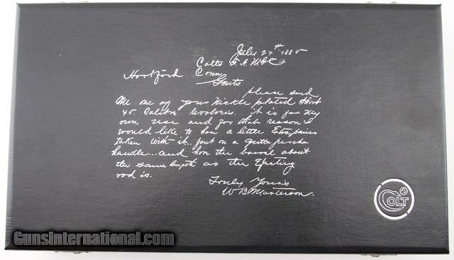 Description: These firearms are sold as a set only: Colt Lawman Series in presentation cases with appropriate documentation paperwork. The Lawman series consists of the following revolvers commemorating famous lawmen of the American West. All firearms have same serial number with appropriate suffix. Wyatt Earp SAA, Serial Number 109WYE, MFG 1970, Buntline with metal skeleton shoulder stock. 16” barrel. Bat Masterson SAA, Serial Number 109LMP, MFG 1967 4 5/8” barrel, Pat Garret SAA, Serial Number 109PGP, MFG 1968 5.5” Barrel Wild Bill Hickok SAA, Serial Number 109WBH, MFG 1969, 7.5” barrel All revolvers are chambered in .45LC. Only 500 of each were made. Add 3% for Credit Card Shipping $50.00 SOLD |