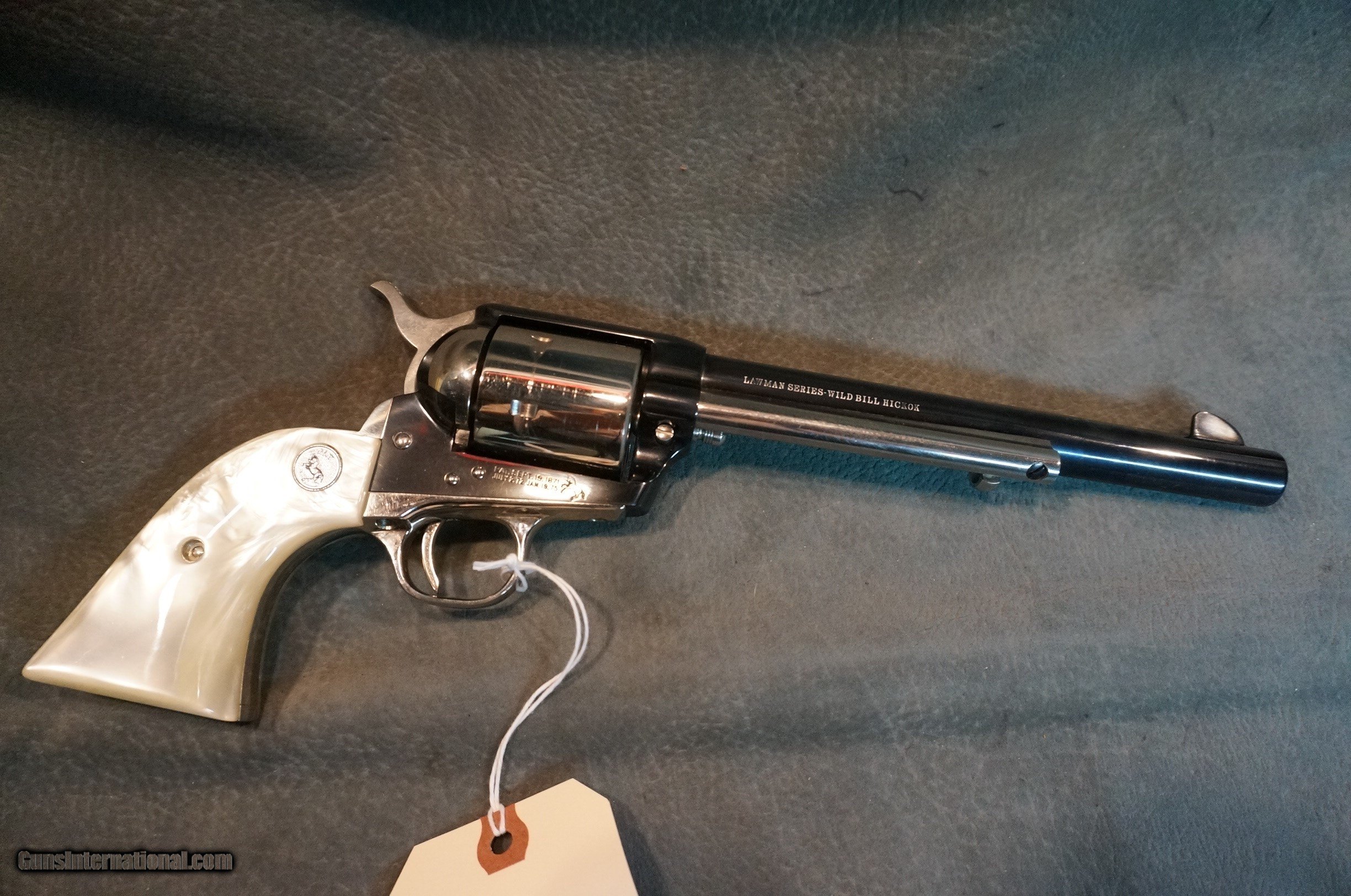 Description: Colt SAA Lawman Series Wild Bill Hickok 45LC 7 1/2" barrel,blue and nickel finish,Pearlite grips,serial #368WBH,new unfired in the factory display case with paperwork,matching numbered Pat Garrett with the same serial # available,$1895 each or $3600 for the pair. We buy, sell, consign and trade new and used firearms. This is our 42nd year in business. We offer 90 day layaways with 20% down. No return on layaways. Firearms will need to be transferred through a FFL dealer. Prices reflect a cash discount. There will be 3% added to credit card sales. We trade for gold and silver. Gun collections wanted for cash. THANK YOU! SOLD |