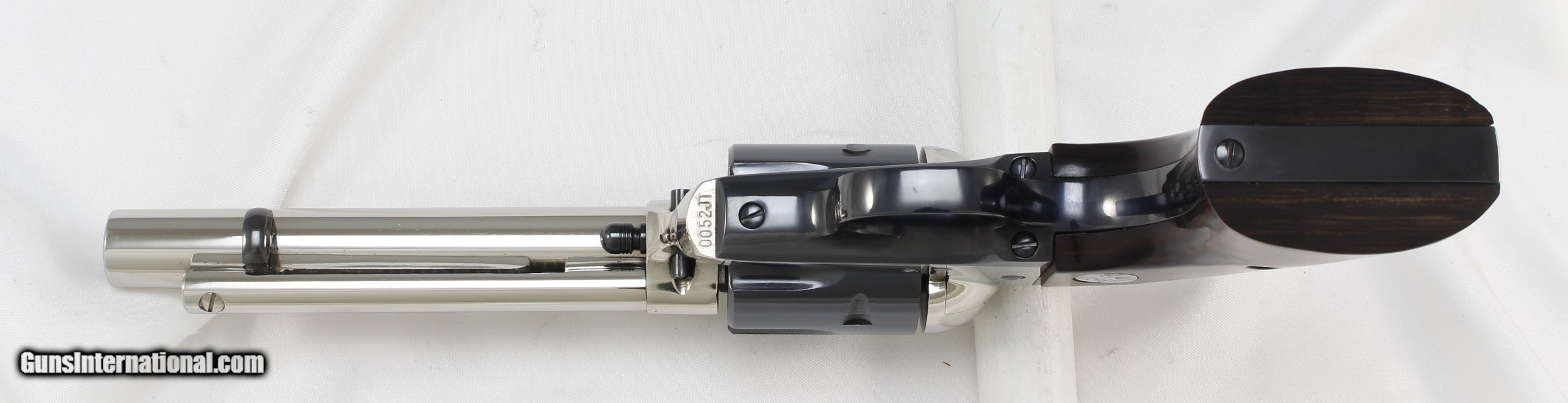 Description: Colt SAA New Jersey Tercentenary Commemorative Revolver in .45LC. SN #0052JT. Made in 1964. Only 250 of these were made. NEW AND UNFIRED OTHER THAN TESTING. 5 1/2" Nickel Plated Barrel and Nickel Frame. The Metal Finish is in NEW condition. The Walnut Grips with Rampant Colt Medallions are also in EXCELLENT condition. Comes in a Colt Wooden Display Case marked with New Jersey Tercentenary 1664-1964. Weight: 2.35 lbs. Trigger Pull: 5 1/4 lbs. More photos available upon request. Ships to Lower 48 W/ Insurance $35.00. SOLD Curio/Relic: Yes Handgun Caliber: .45 Colt Manufacturer: Colt Model: SAA New Jersey Commemorative Serial Number: 0052JT Barrel Length: 5 1/2 Condition: New In Box Metal Condition: New In Box Wood Condition: New In Box Bore Condition: Unfired Action: Single Action Finish: Blued / Nickel Weight: 2.35 lbs Manufacture Date: 1964 |