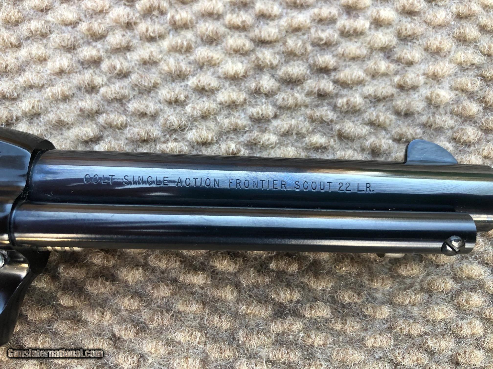 Description: SOLD PENDING RECEIPT OF FUNDS. As new in Colt Presentaion Box. Never fired and no turn marks on cylinder. I've done my best to show any flaws that might exist in photos. Serial # 1719DJ. Contact me with any questions. $35 ground shipping from my FFL to your FFL in lower 48 only. 3 day no fire inspection period offered to Buyer. SOLD Handgun Caliber: .22 Long Rifle Manufacturer: Colt Model: Frontier Scout Condition: As New in Box Metal Condition: Excellent |