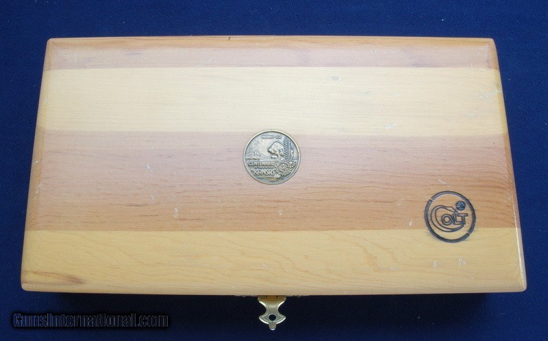 Description: You cannot upgrade this one!!!! 1961 production Kansas Centennial Frontier Scout .22. It was purchased by the customer's grandfather in 1961 and has literally been in the dark in a closet since. Never played with, never shot, never displayed. The gold plate is like a mirror. I didn't try to cock it or open the gate or anything else. Don't even want to put a fingerprint on it. It comes with the original Colt box as shown with the original Warranty card, manual, brush, wax paper, plastic bag, AND the original purchase receipt. It also came with the Colt 125th Anniversary medallion which I think was put with all the guns Colt made in 1961. The wood display case has a couple of storage dings on the top, but it is soft wood and 60 years old. The red velvet inside is as it was the day the gun was built. This literally looks like it was made yesterday. As with so many things, you get what you pay for. I've never seen one with the original box, receipt, etc. This is as perfect as you will ever see. Sorry if I'm being repetitive, but it's that good. $50 shipping to the lower 48, 3% surcharge for using a CC. If you choose to pay with a personal check, we will hold the item for up to 10 days to make sure that it clears. Please expedite such pymts as we will hold an item on your word for 5 days. SOLD Handgun Caliber: .22 Long Rifle |